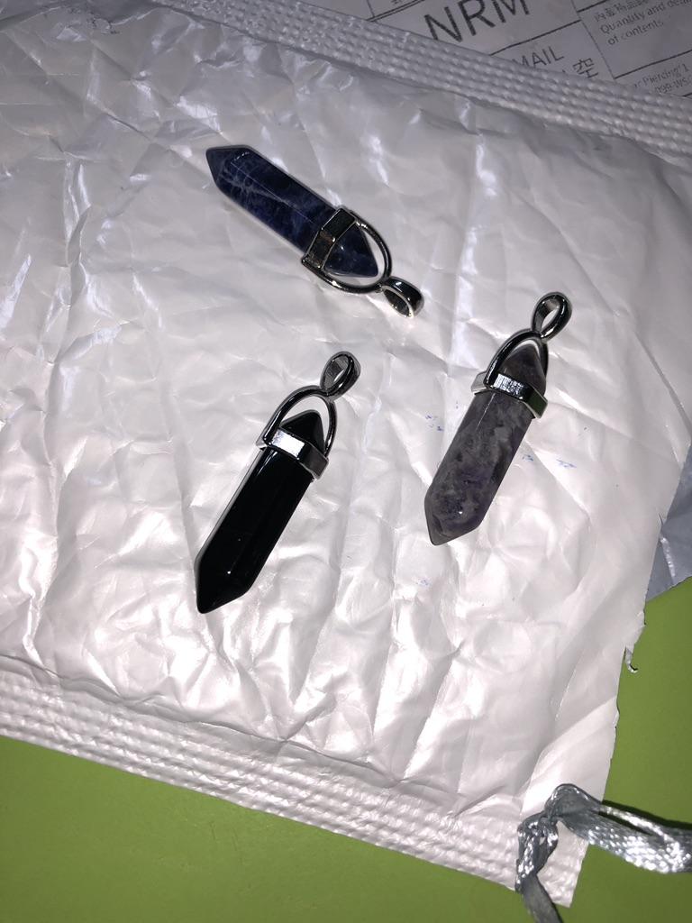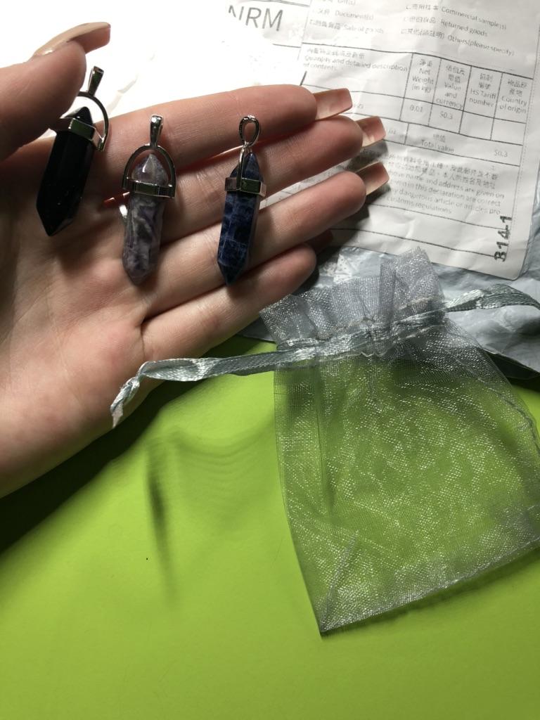 Vantagens: O pacote chegou três semanas após o pedido. Todos os três brincos vieram em uma bolsa de organza amarela transparente. recomendo o vendedor. Desvantagens: Na foto, os brincos pareciam um pouco melhores. Espero que sejam pedras naturais, que foram indicadas na descrição do produto.