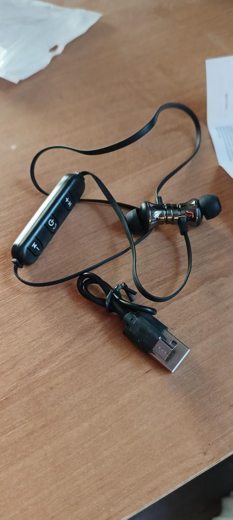 Fones de ouvido "bônus", por apenas 4 hryvnias, seria um pecado não pegar, ainda mais quando uso esses.. Não são maus. Em média, duram 3-4 horas de trabalho. Os novos duram mais, porque com o uso diário, a bateria degrada-se em seis meses.. E assim os fones de ouvido são muito bons, o bluetooth mantém o sinal dentro de 10-15 metros quando não há obstáculos e paredes.. Gravei o vídeo com os que uso, são absolutamente iguais, apenas a diferença na cor do revestimento do fone de ouvido