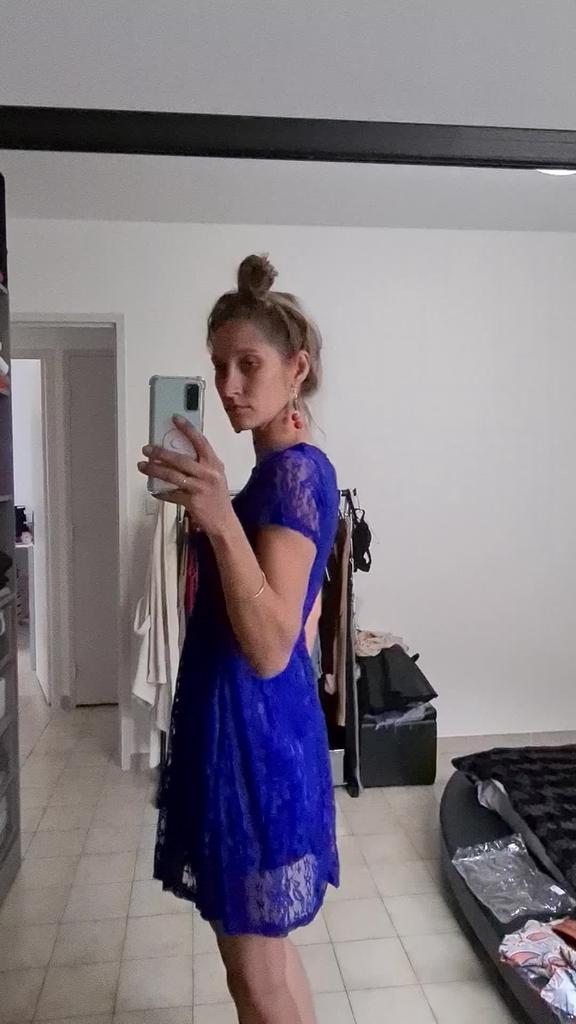 O vestido azul é realmente lindo. Eu visto tamanho 38/40 e pedi em XXL. O tecido é muito macio na pele e a entrega foi conforme indicado. Eu estou feliz.