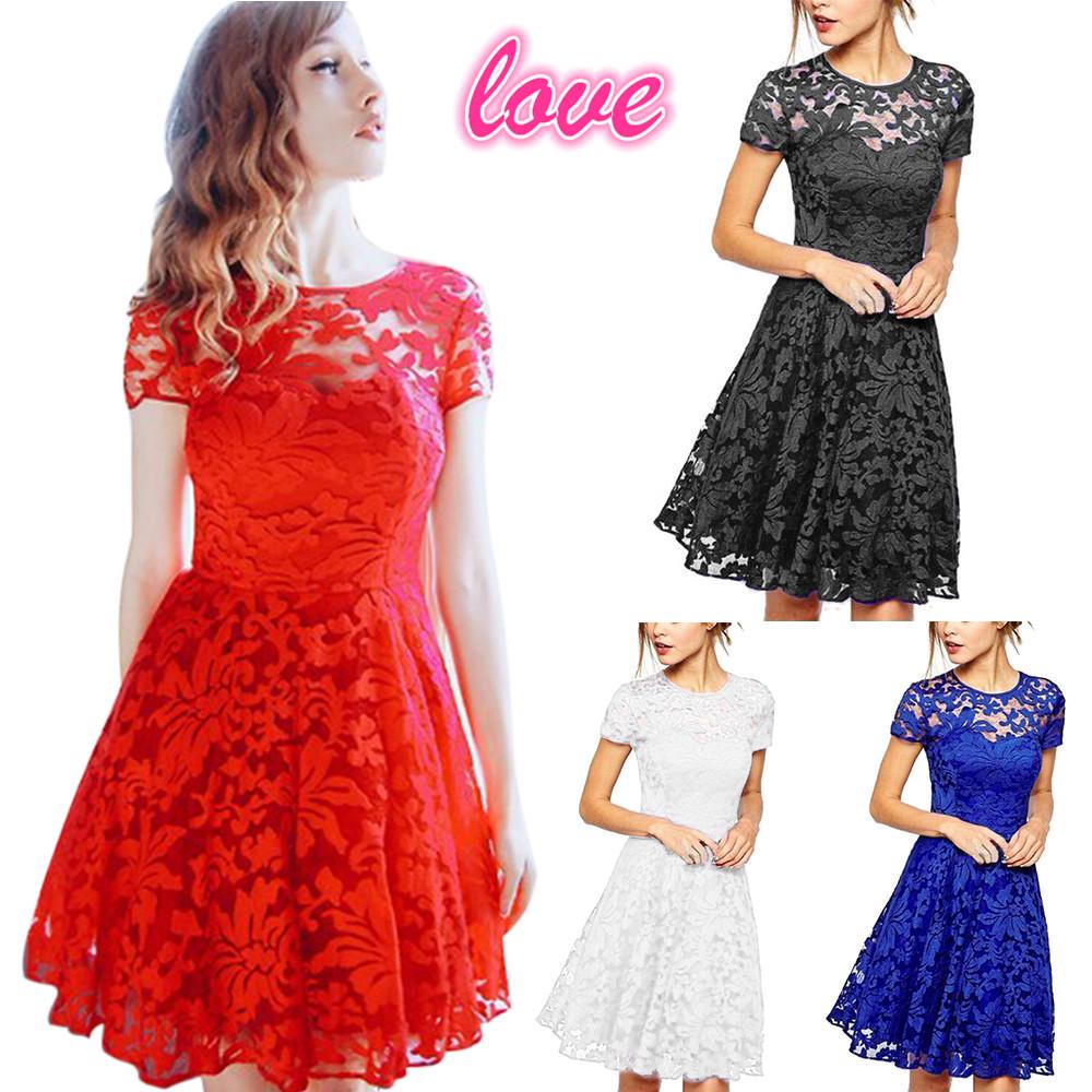 Lovehouse Temperamento Moda Gola Redonda Manga Curta Vestido de Renda