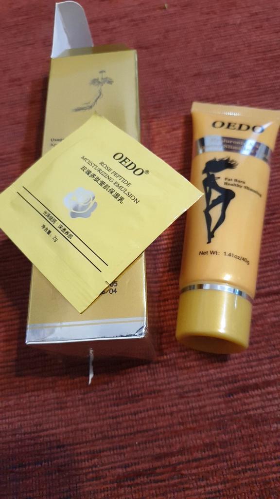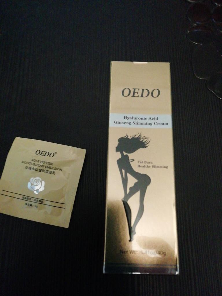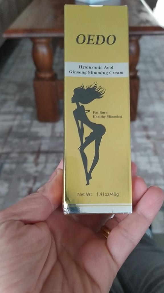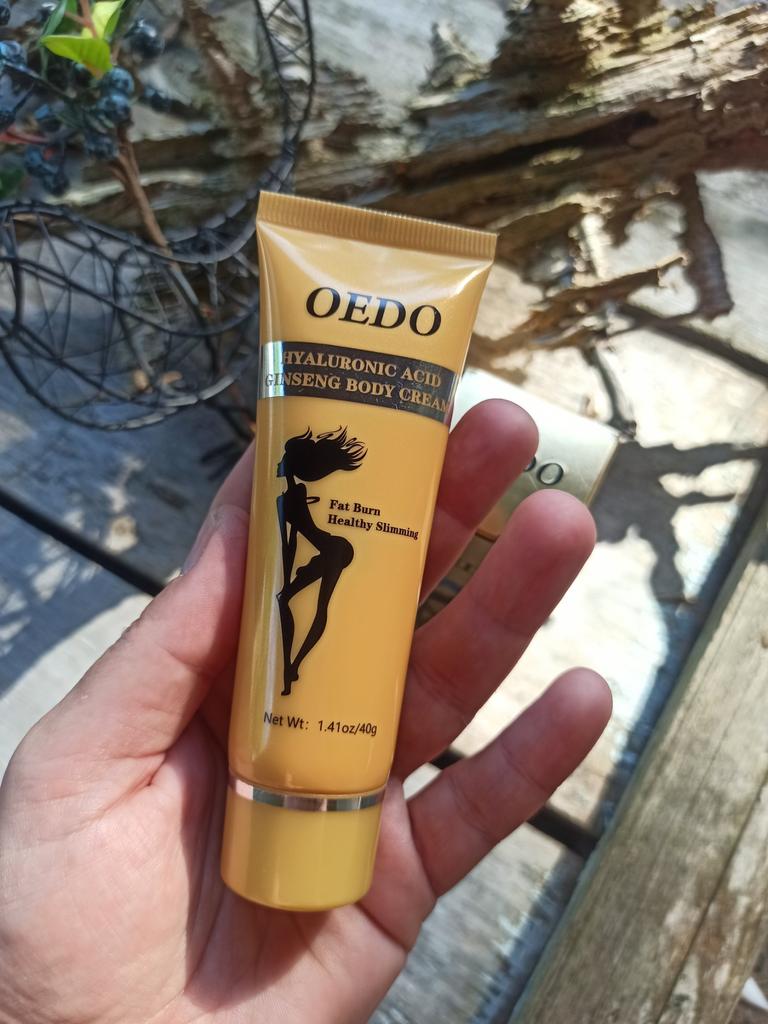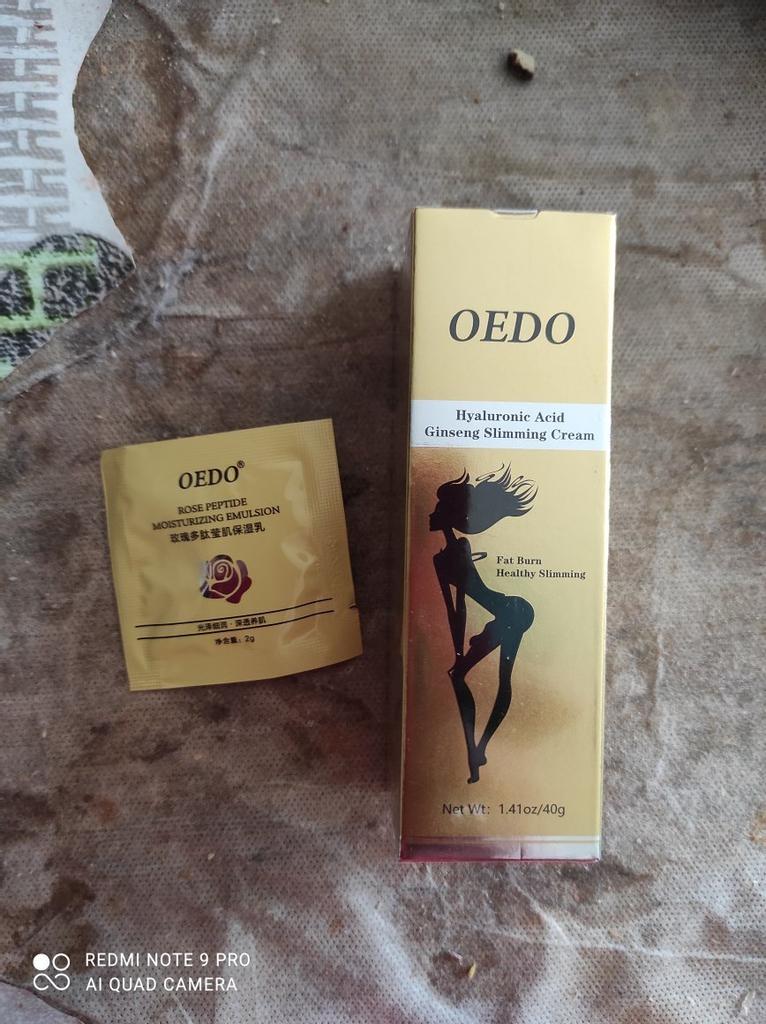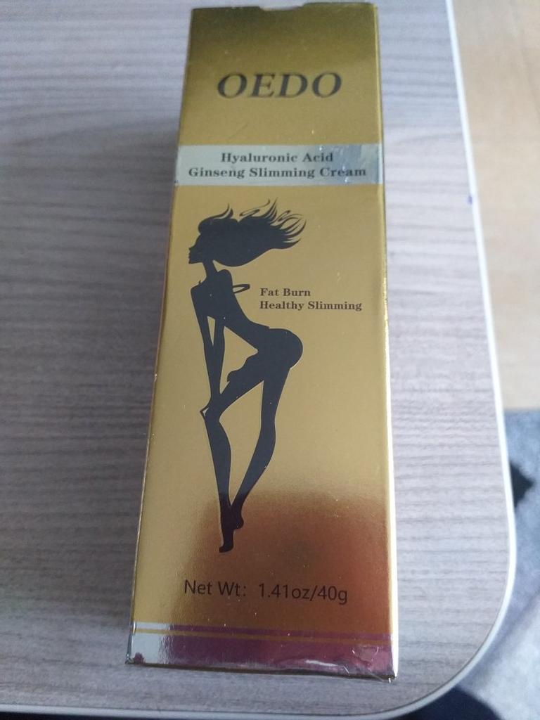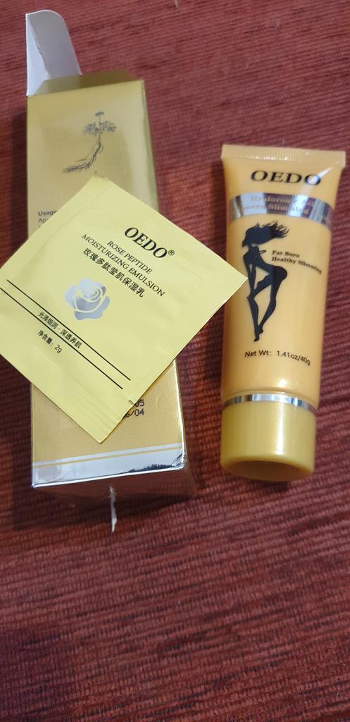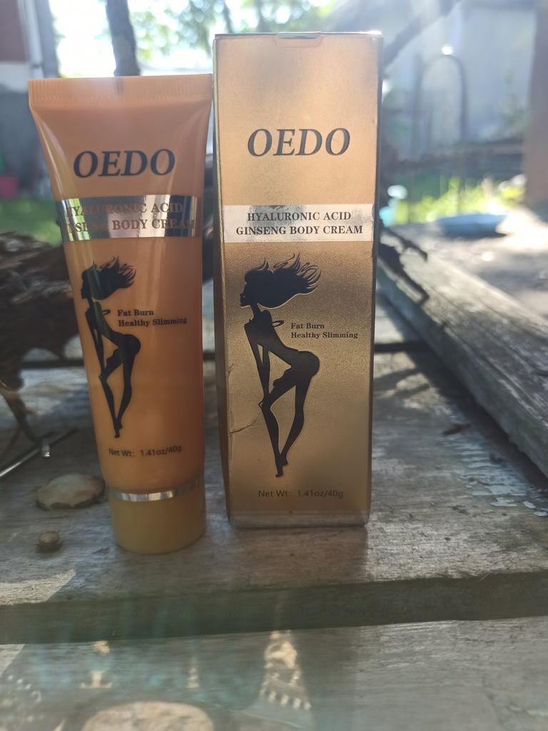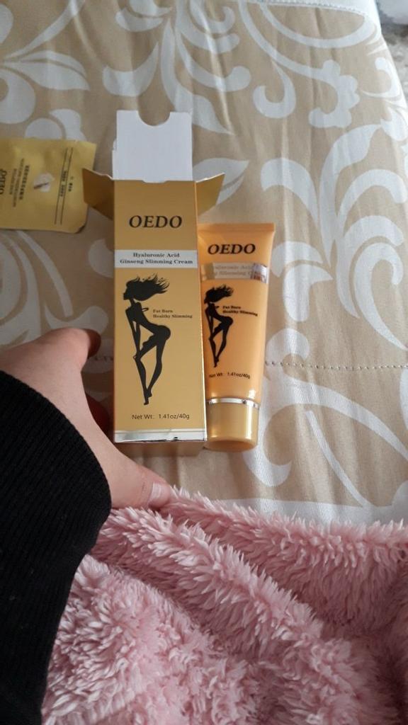 Creme de Emagrecimento - marca: OEDO Este creme é para perder gordura em certas partes do corpo. Também ajuda a reduzir a celulite 👍 Contém Ácido Hialurônico e Ginseng Este creme tem um cheirinho óptimo 💛. Como usar: 🪶Aplique a quantidade adequada do creme nas áreas que deseja que sejam mais finas. 🪶Massageie o creme até que seja totalmente absorvido pela sua pele. 🪶Em seguida, enrole essa parte com filme plástico por 30-40 minutos. O valor total é 40gr. A embalagem foi lacrada com filme plástico. E o tubo foi selado também. Acho que vale a pena experimentar 👍