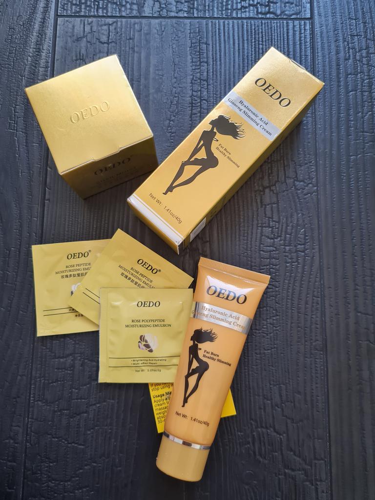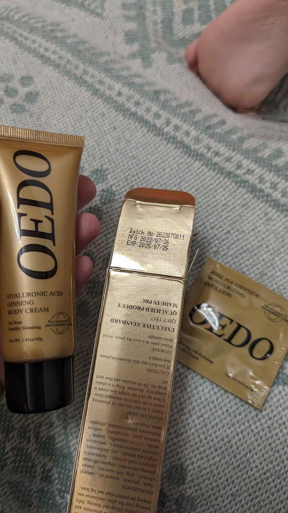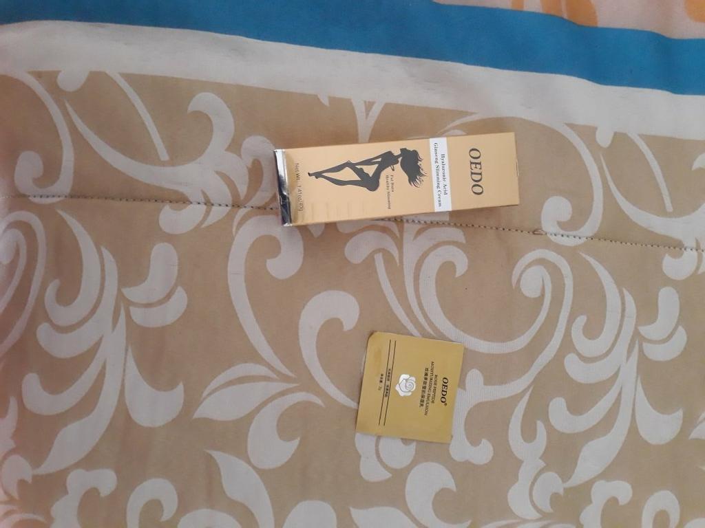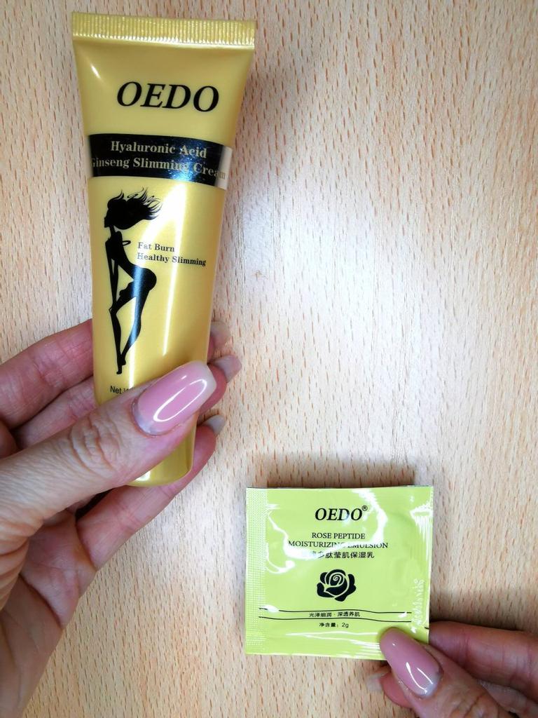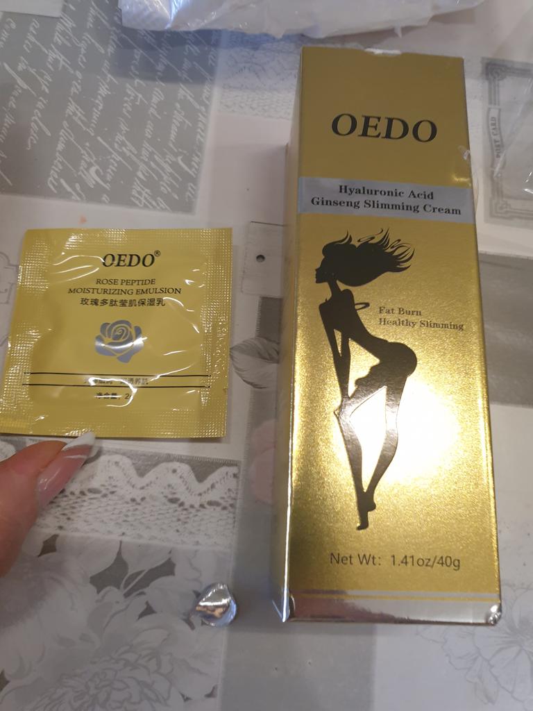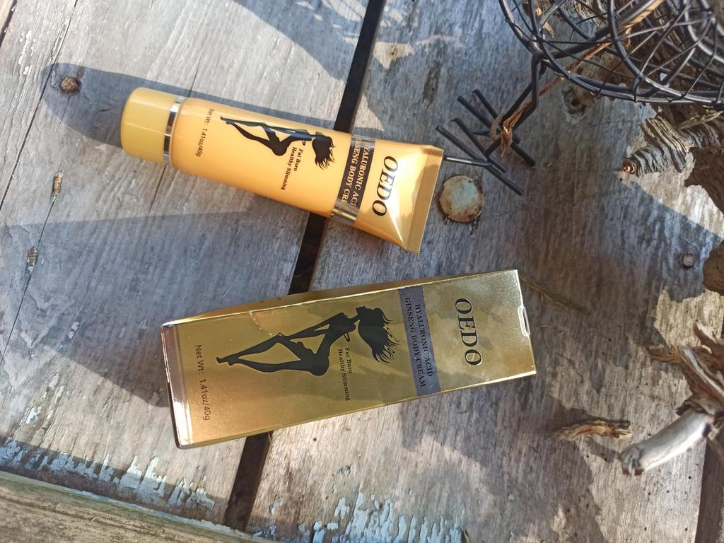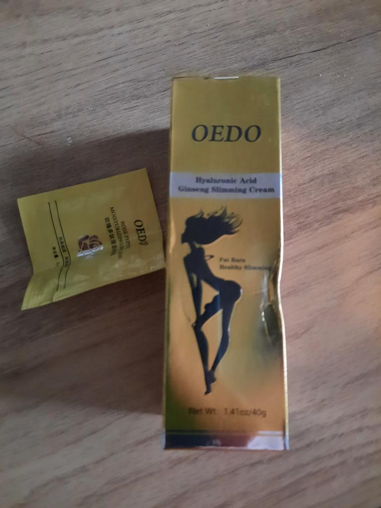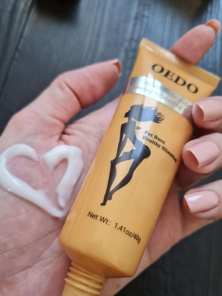 Creme de Emagrecimento - marca: OEDO Este creme é para perder gordura em certas partes do corpo. Também ajuda a reduzir a celulite 👍 Contém Ácido Hialurônico e Ginseng Este creme tem um cheirinho óptimo 💛. Como usar: 🪶Aplique a quantidade adequada do creme nas áreas que deseja que sejam mais finas. 🪶Massageie o creme até que seja totalmente absorvido pela sua pele. 🪶Em seguida, enrole essa parte com filme plástico por 30-40 minutos. O valor total é 40gr. A embalagem foi lacrada com filme plástico. E o tubo foi selado também. Acho que vale a pena experimentar 👍