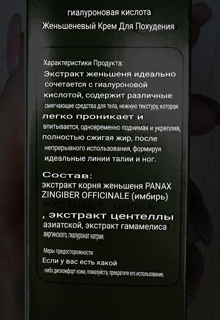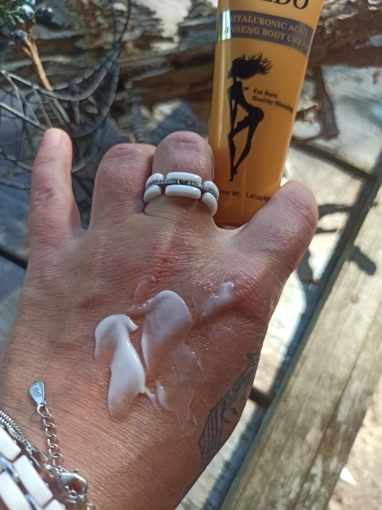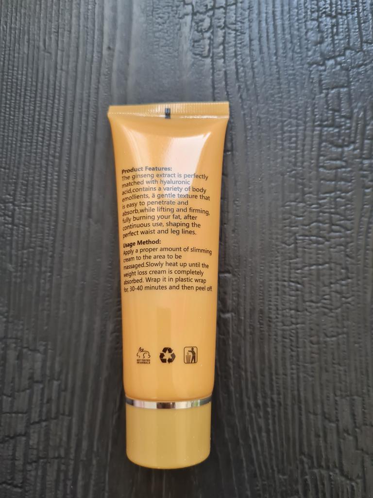 Creme redutor de emagrecimento com ácido hialurônico e ginseng. É um produto natural para ajudar a combater a celulite nos processos de emagrecimento. É um creme de fácil absorção, cheiro forte e não é pegajoso. A textura é legal. Ele vem muito bem lacrado. Na hora de colocá-lo, a temperatura da pele aumenta. Recomenda-se aplicar na pele com uma leve massagem e usá-lo todos os dias. Também é um produto não testado em animais (cruelty free) 💖 Chegou muito rápido e o vendedor embalou muito bem o produto. Ele também adicionou algumas amostras de creme como presente. Quando terminar de usá-lo, adicionarei comentários sobre o resultado.