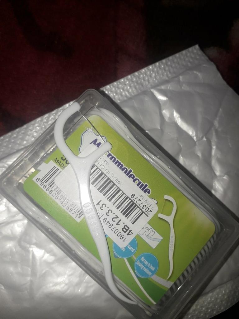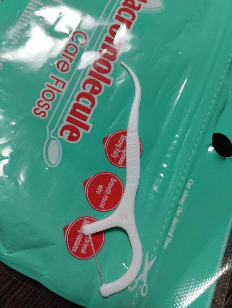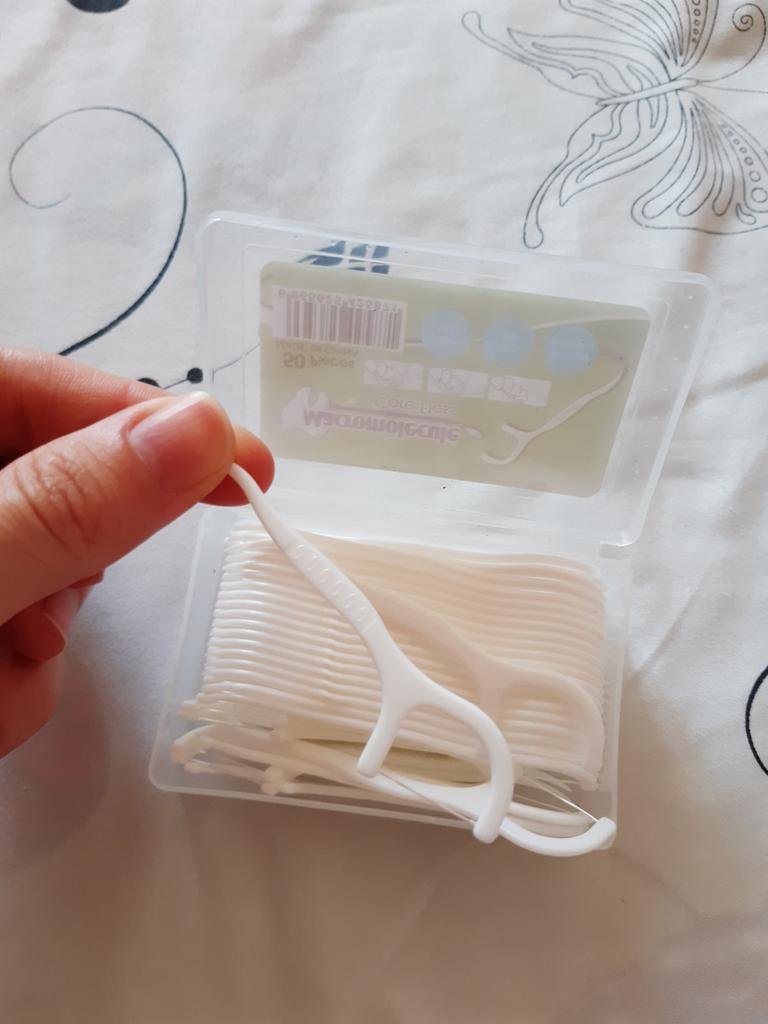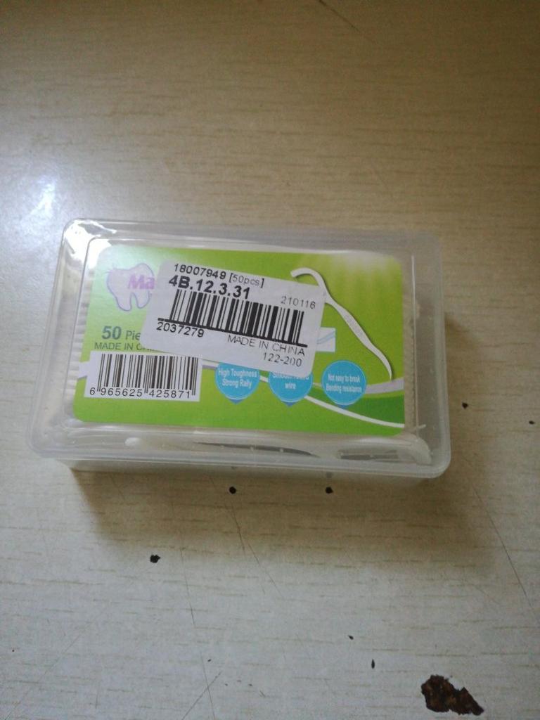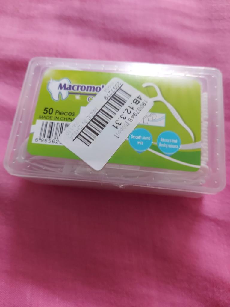 O produto parece ser muito bom. Você pode usar as duas pontas do palito como fio dental ou palito de dente. A entrega foi muito rápida e o produto estava intacto.