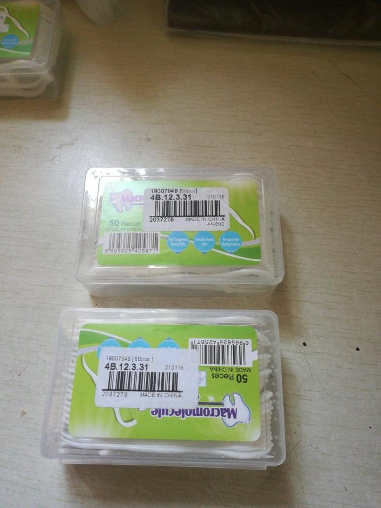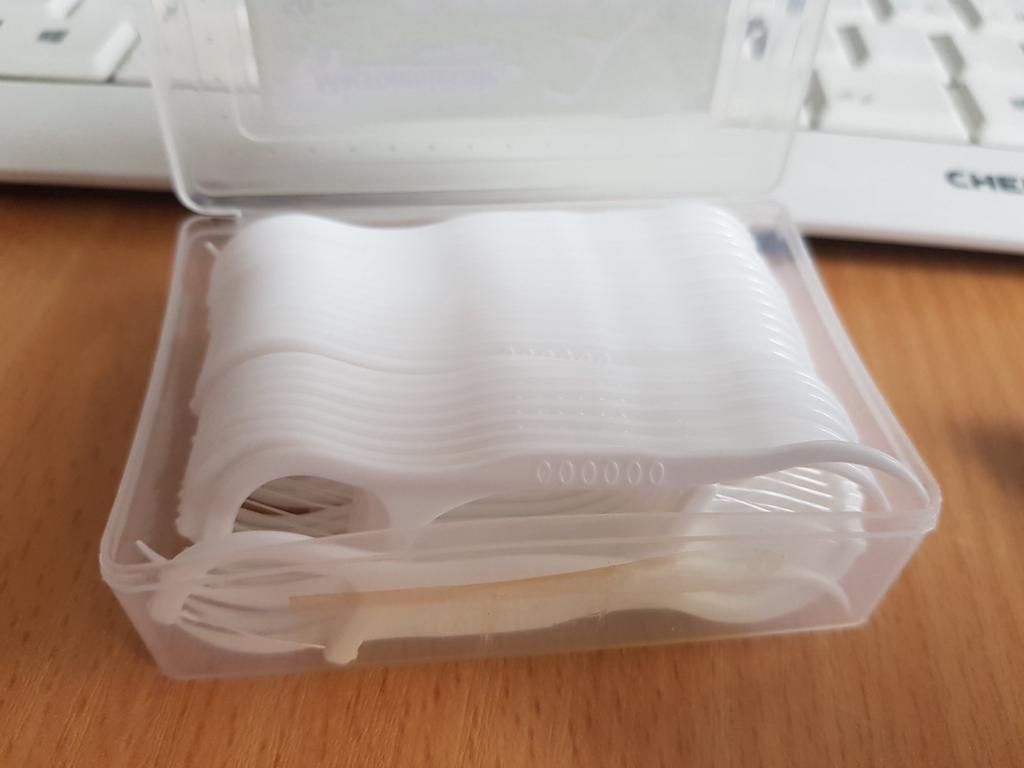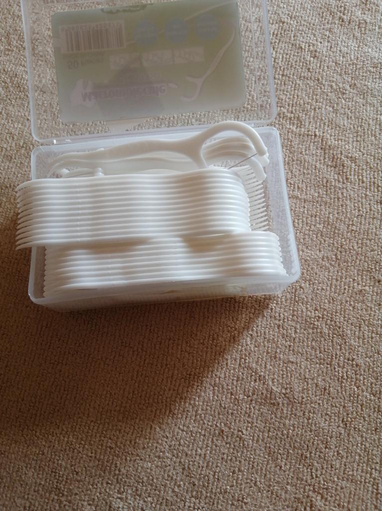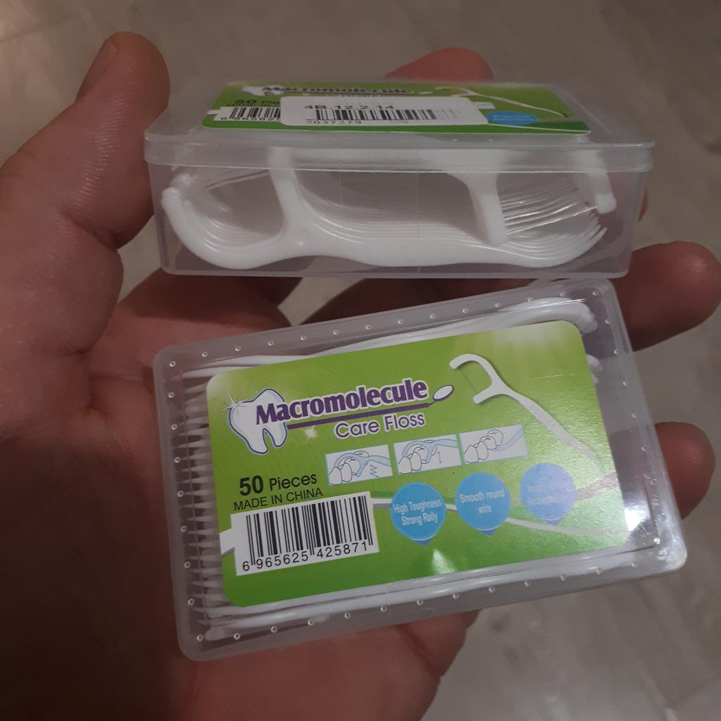 Palitos de rosca, os chamados Flossers para limpeza de espaços interdentais. 50 pcs em uma caixa dura pura. Eles parecem muito bons. Eu recomendo