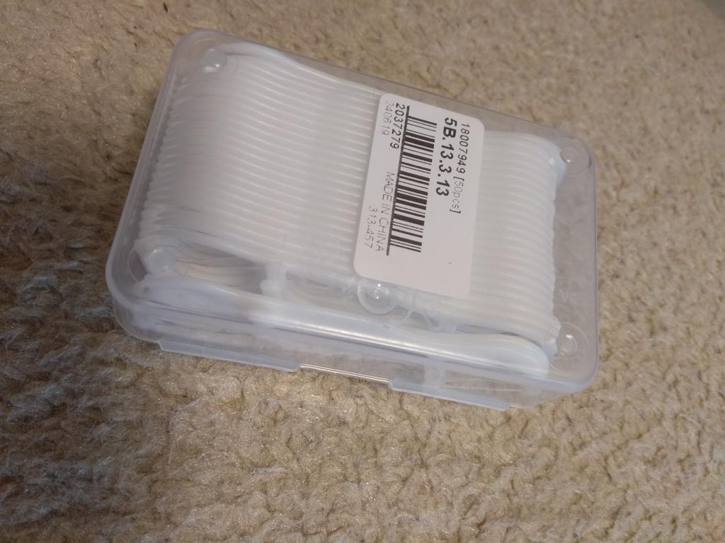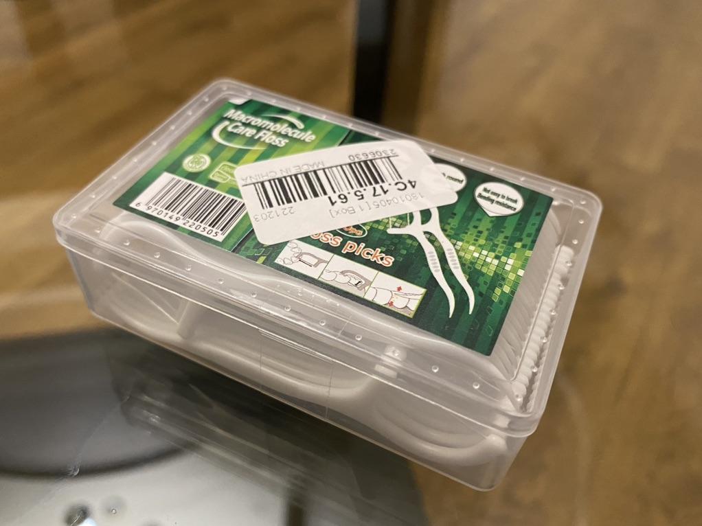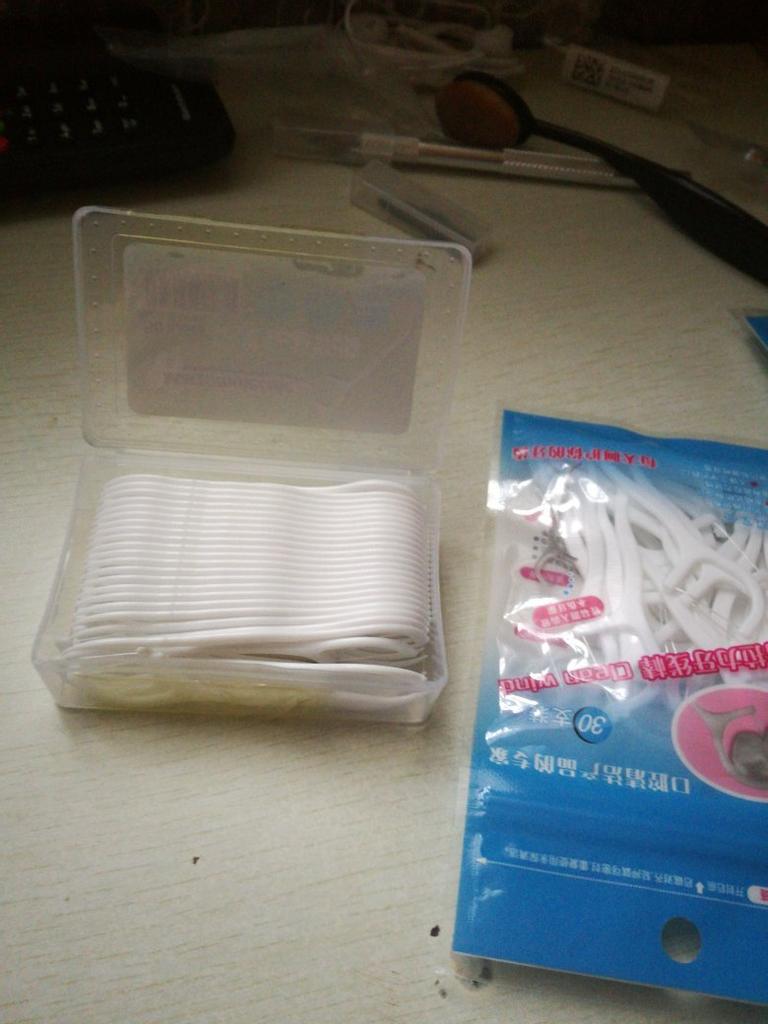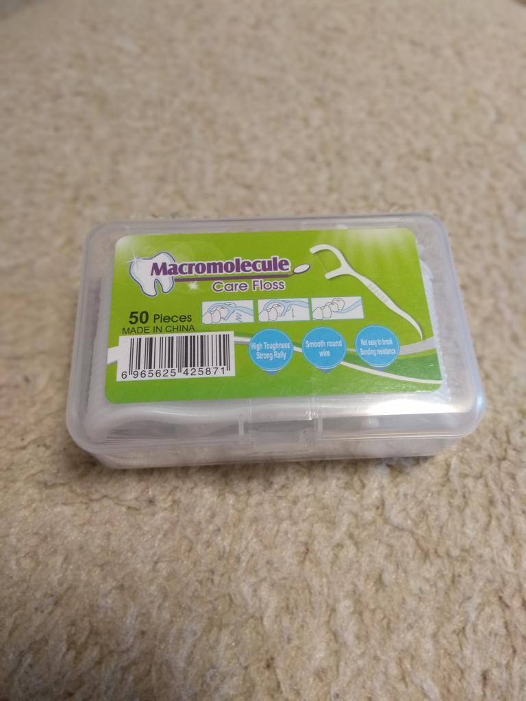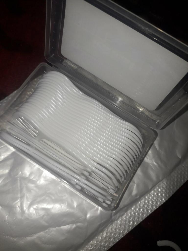 Palitos de rosca, os chamados Flossers para limpeza de espaços interdentais. 50 pcs em uma caixa dura pura. Eles parecem muito bons. Eu recomendo