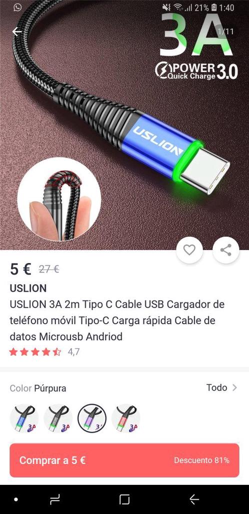 USLION é um cabo usb tipo C muito bom e útil para smartphone. Estou satisfeito com os produtos adquiridos no Joom.