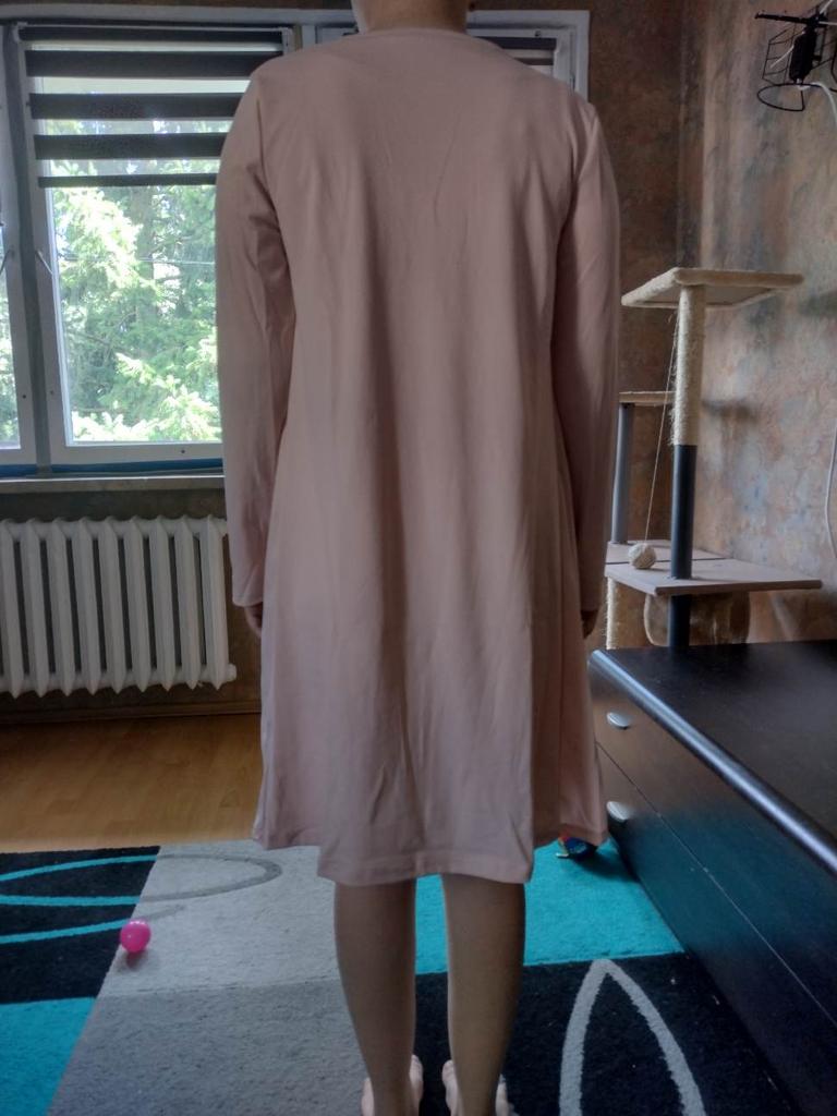Eu pedi um tamanho maior. Muito confortável, tecido lindo. Eu gosto muito disso. Recomendado