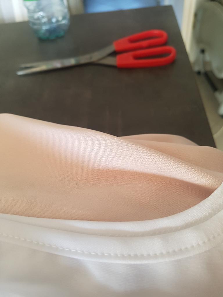 Conjunto muito bom, adorei AVISO. O top branco é bastante transparente, embora eu tenha colocado um sutiã branco por baixo, ainda era visível. Adivinhe bem. Através de um forro na parte superior não teria sido luxo