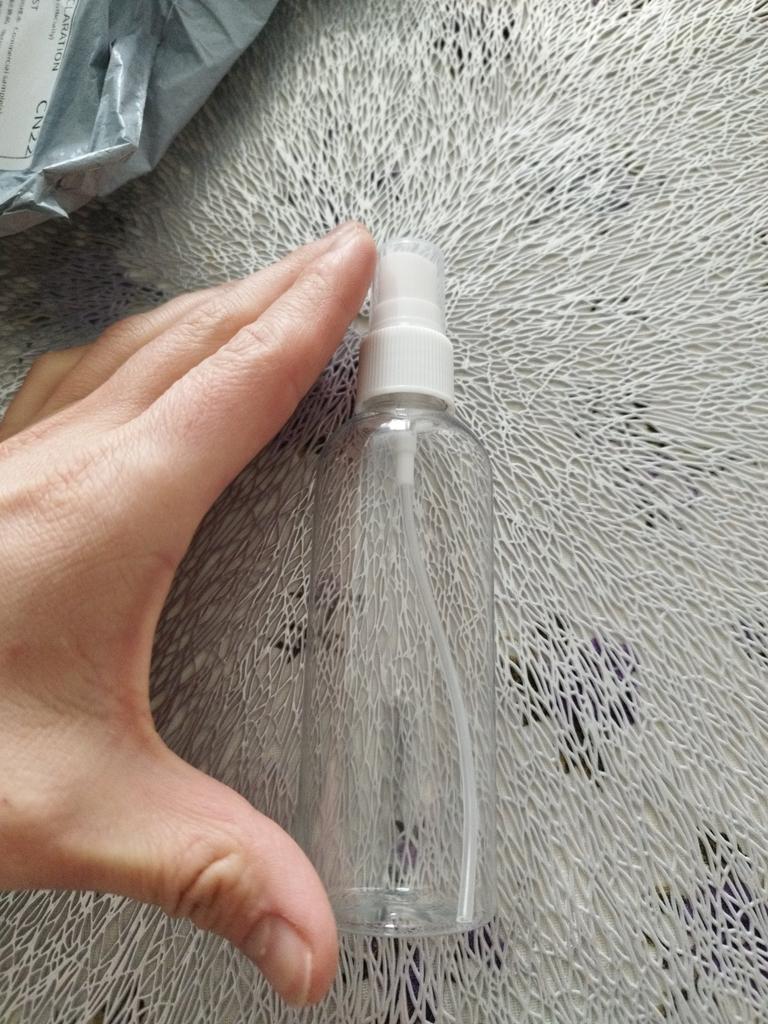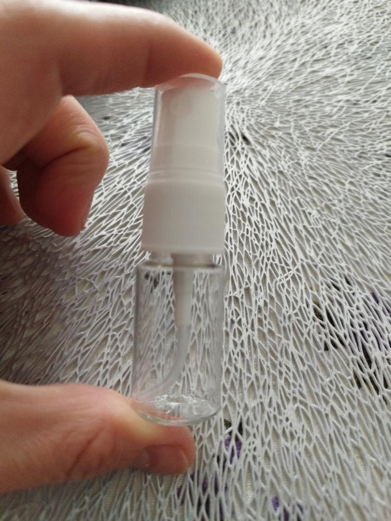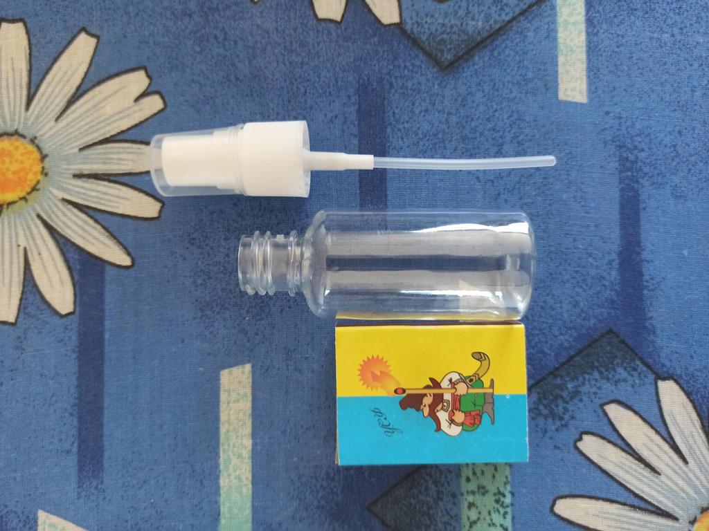 Uma garrafa vazia para colocar líquidos e poder removê-los com o spray. Com isso posso colocar álcool para espalhar nas mãos, por exemplo