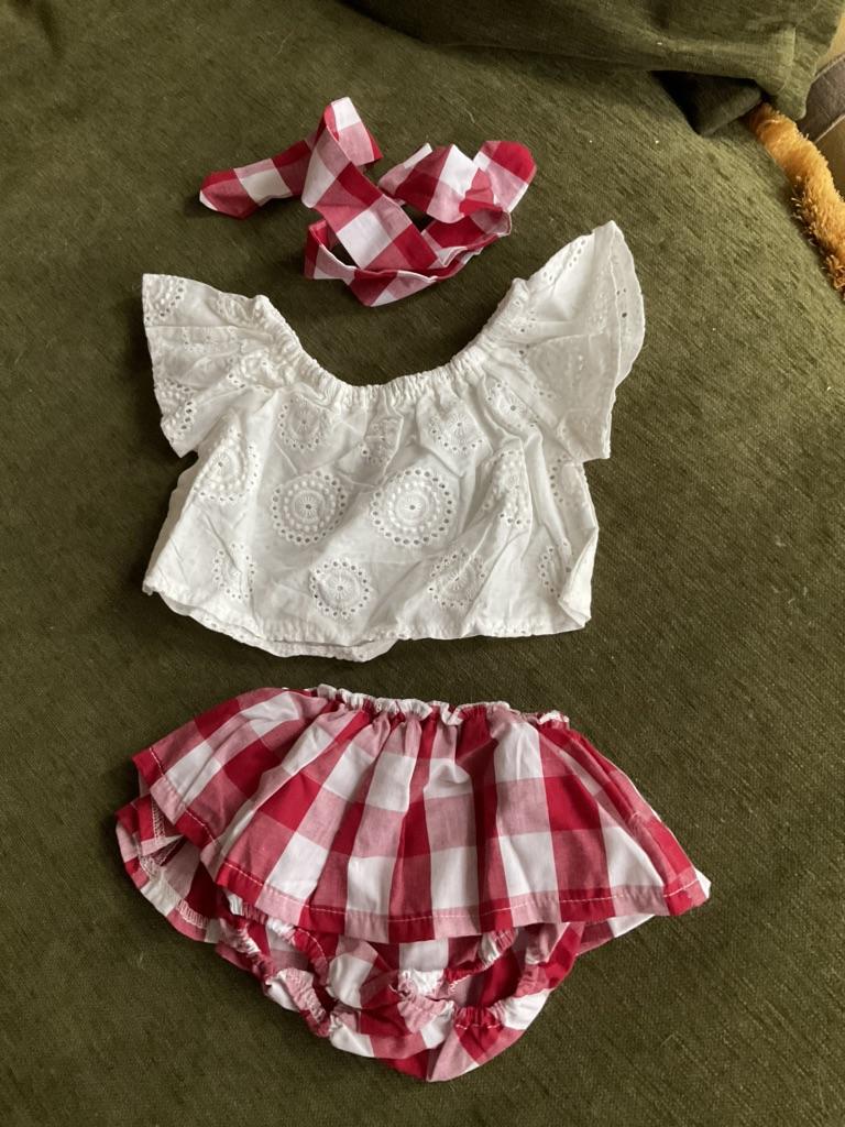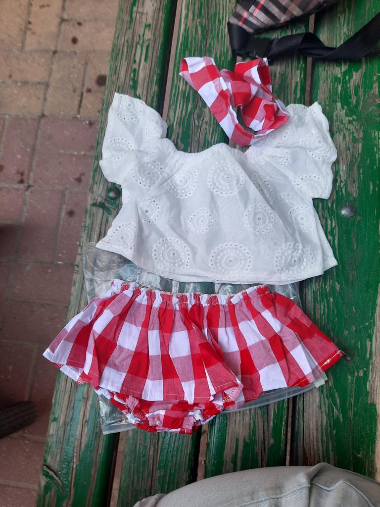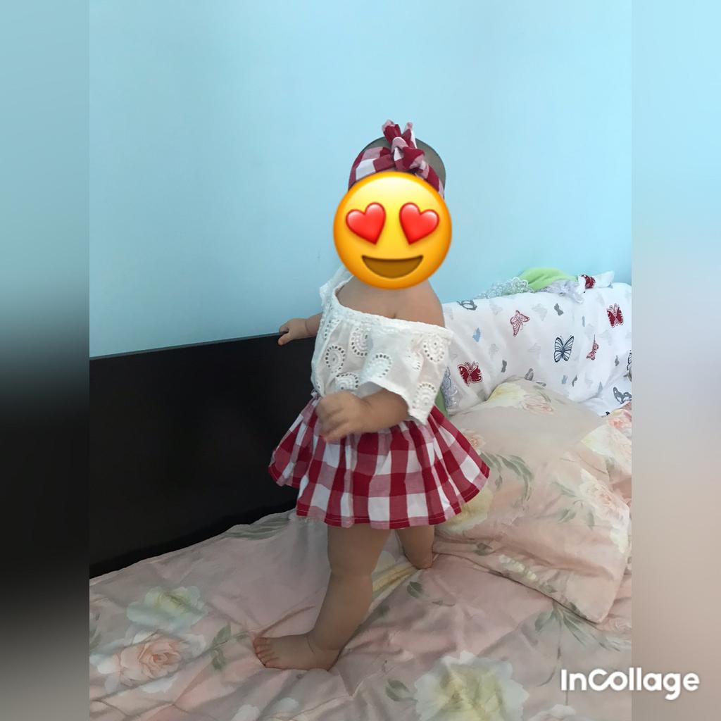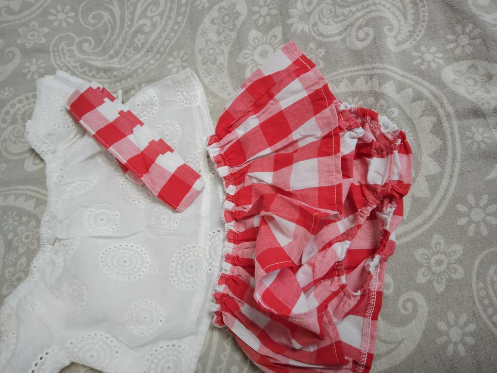O conjunto é muito bom, recomendo a todos. O tamanho quase serviu, só que temos uma menina bem pequena para a idade de 9 meses. Todas as costuras são perfeitas, o tecido é agradável ao toque, obrigado ao vendedor.
