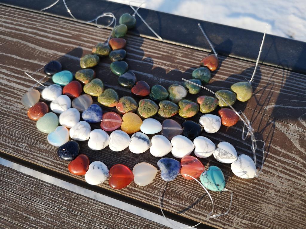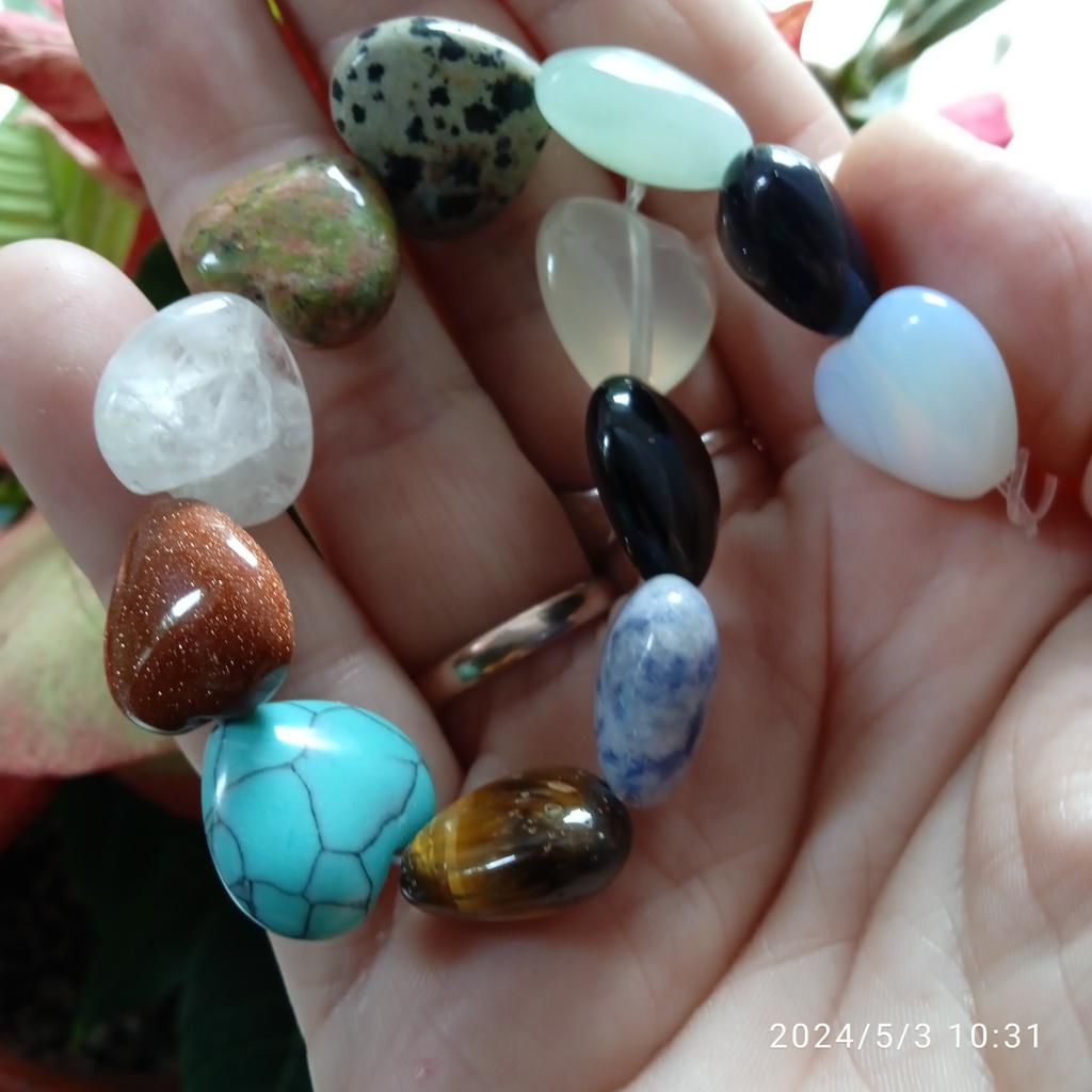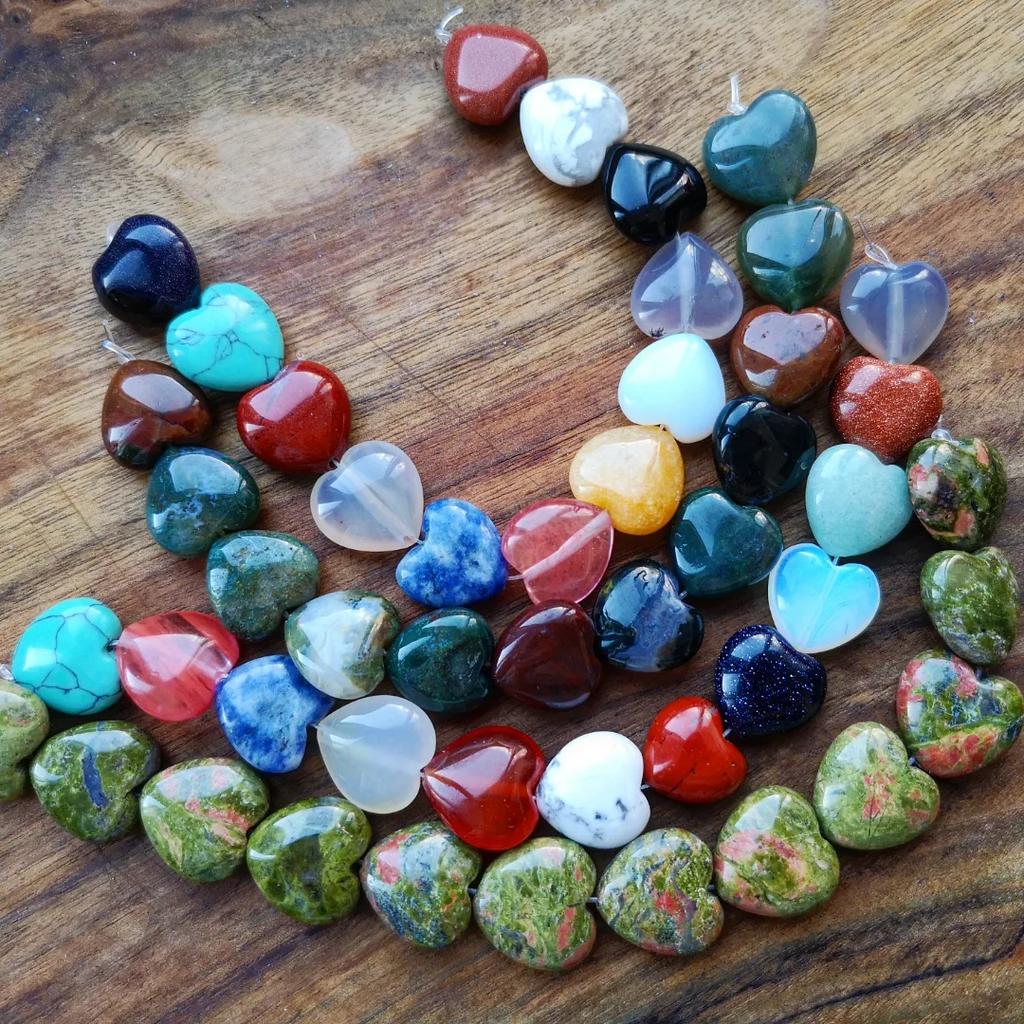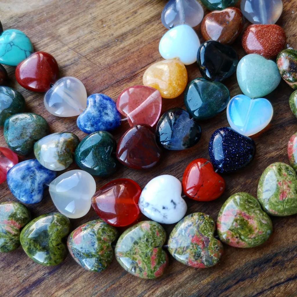 12 belos corações diferentes feitos de pedras semipreciosas