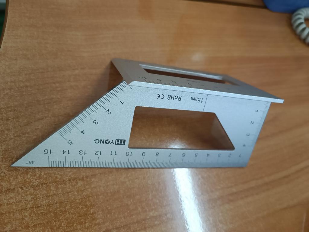O quadrado em si é bem feito, mas a escala da régua não é de alta qualidade e apresenta lacunas.