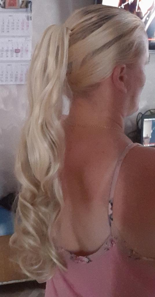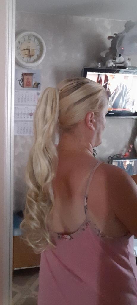 A peruca rabo de cavalo parece natural, tudo corresponde à declaração do vendedor. O fecho é um caranguejo, muito forte, a peruca em si é sentida na cabeça, não leve. Gostei, será necessário mudar a imagem