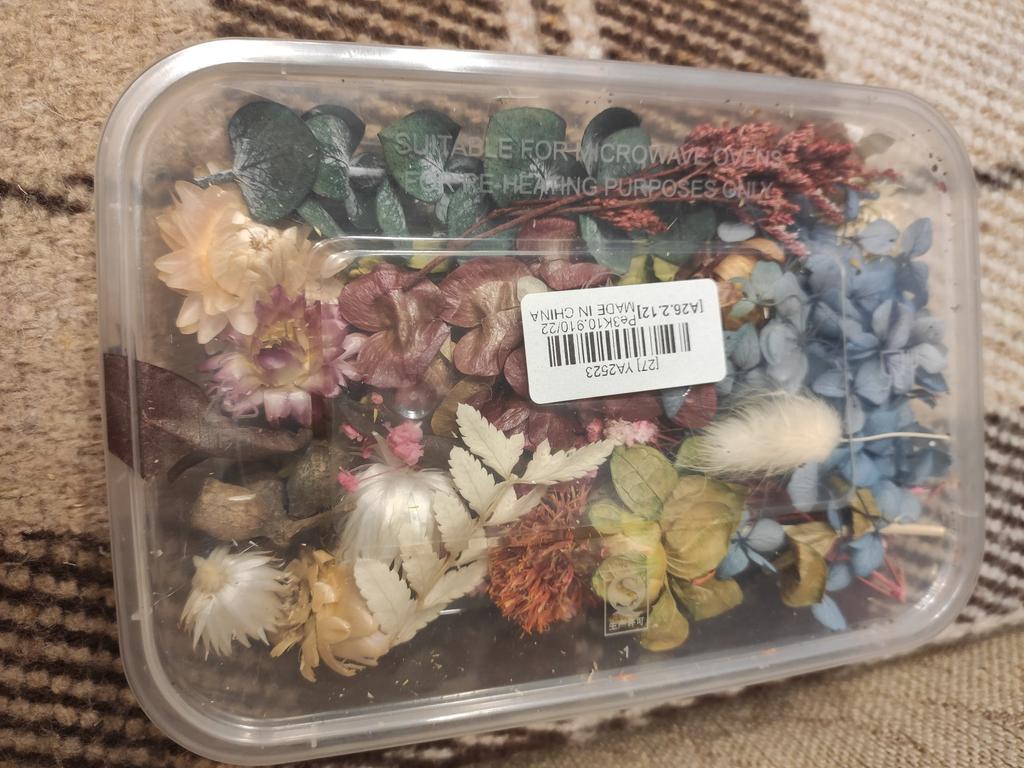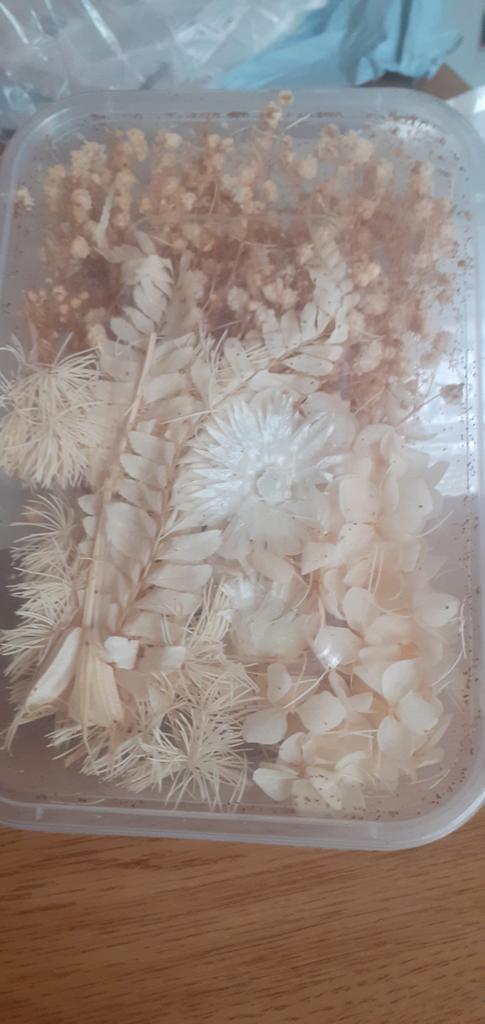 comprei essas flores secas porque queria usá-las em alguns projetos de epóxi, mas estava com um pouco de medo de que quebrassem quando as recebi devido ao longo transporte. Mas fiquei agradavelmente surpreso com o quão bem eles estavam embalados. Fiquei muito feliz com a seleção na caixa e estou ansioso para começar a usá-los. Grande seleção de cores e flores diferentes é muito feliz.