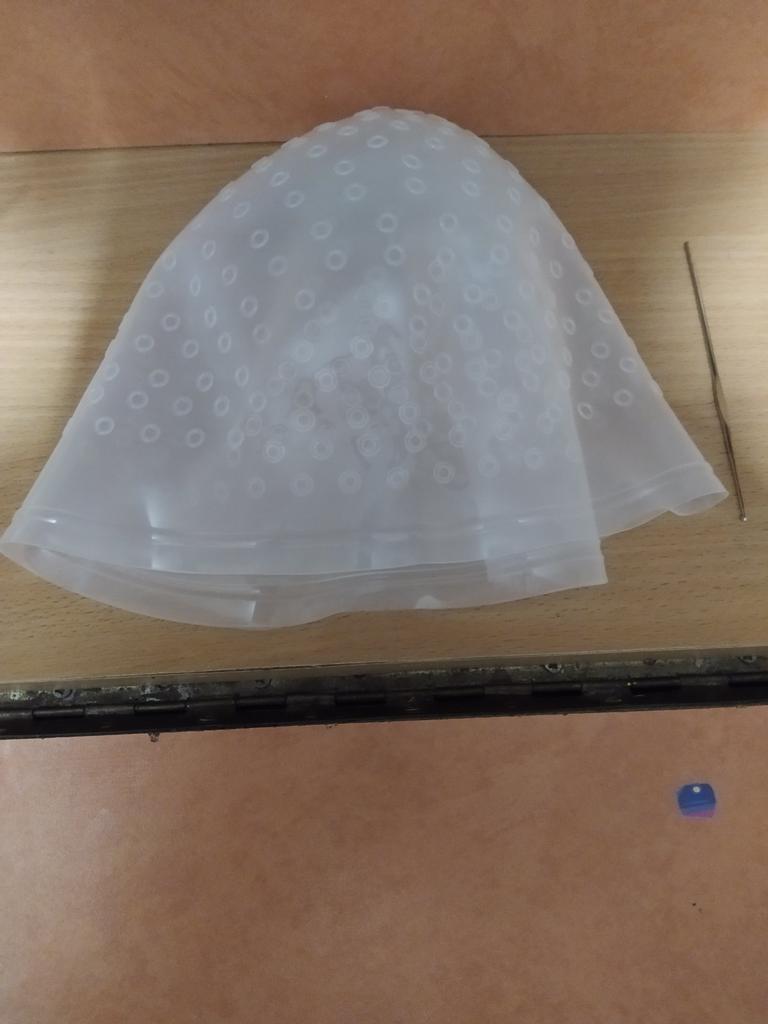 Chapéu de coloração de cabelo reutilizável destacando corante branco glacê com ganchos derrubando cor
