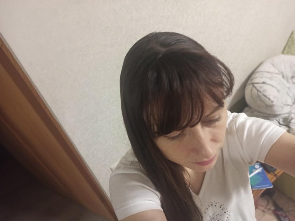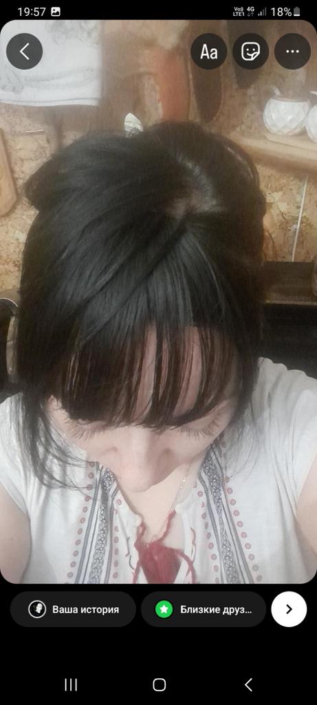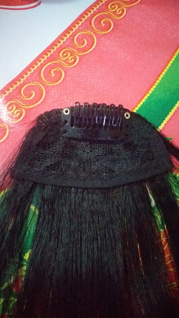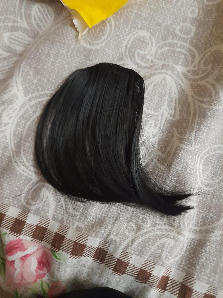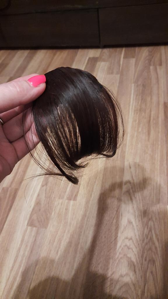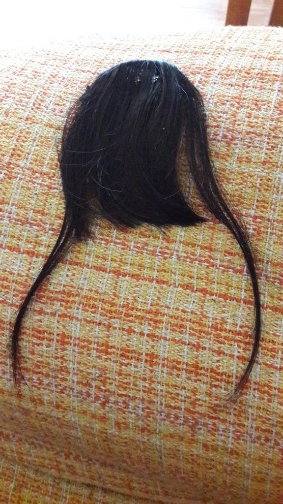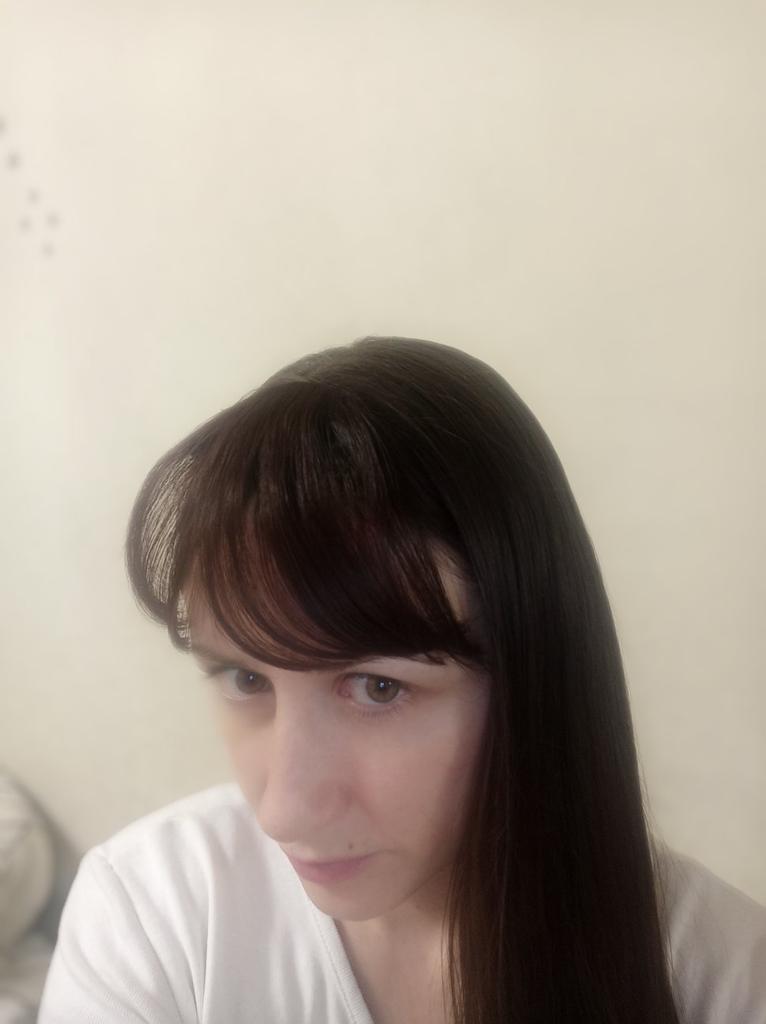 Não é muito diferente do meu cabelo. Não há brilho natural. Coisas legais para variar. Principalmente se você precisar cobrir temporariamente a testa ou de repente quiser fazer uma franja, mas não quiser cortar o cabelo. Mas é preciso cobrir o local onde está fixado com alguma coisa, por exemplo com um bastidor, pois a transição é perceptível de perto. E então estou feliz.