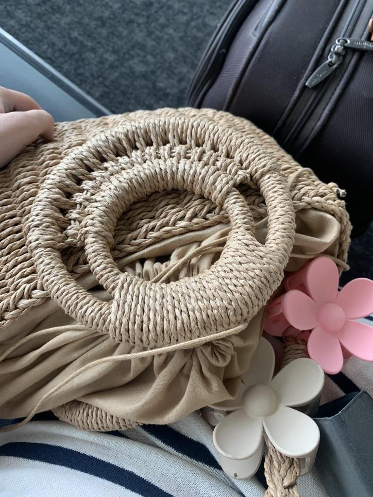 Gosto muito dessa linda bolsa estilo cesta, tem alça e é bem funda, cuidado para não fechar, é uma pena. O vime e a trança são bonitos e sólidos, o interior é forrado com tecido Perfeito para o verão e com vestidos florais ou looks hippie chic