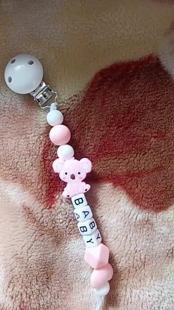 1 pc chupeta mastigar corrente chupeta clipe titular silicone letras do bocal diy contas redondas bonito bebê