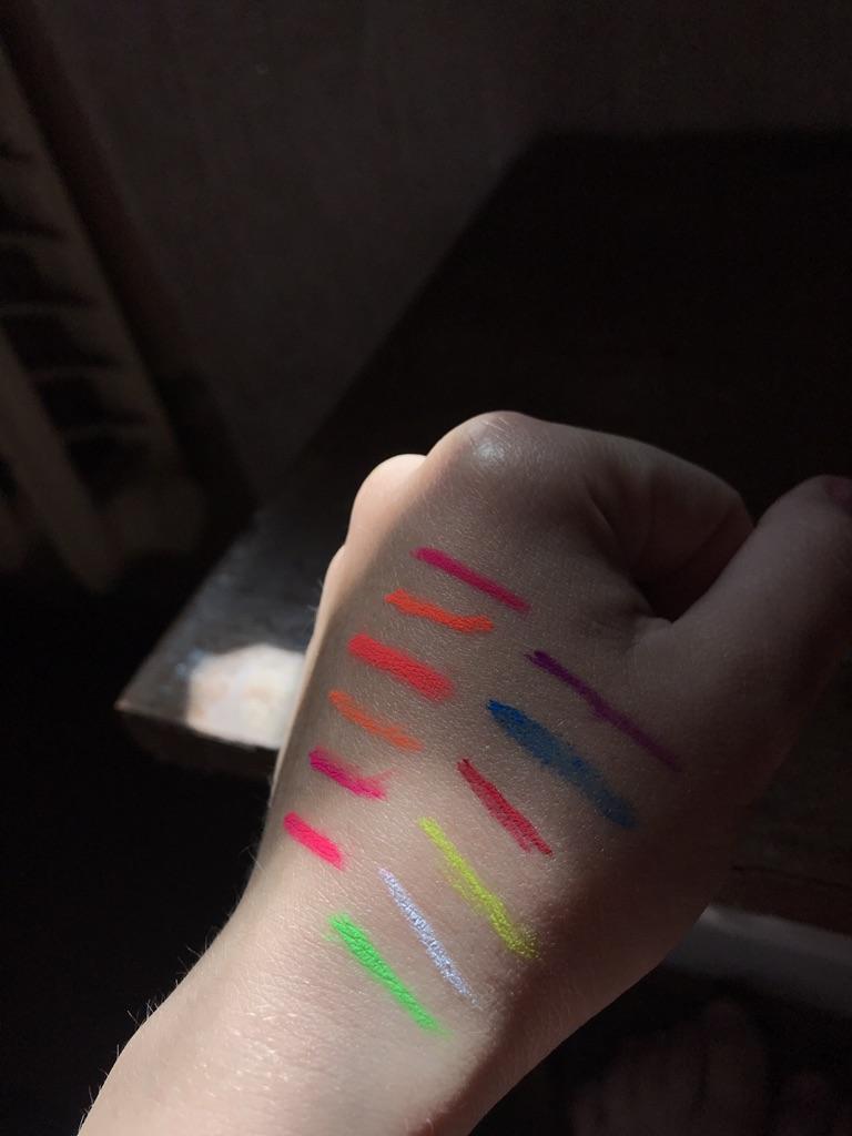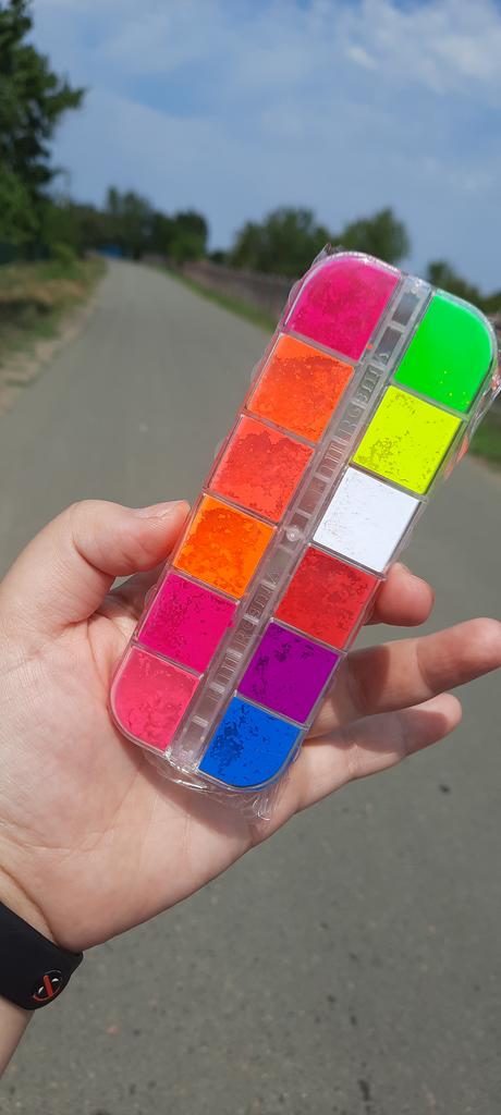 Pigmentos incrivelmente brilhantes. Eles ainda deixam uma tonalidade na pele após a maquiagem. Deve ser aplicado com cuidado, pois as roupas irão imediatamente para a lavagem.