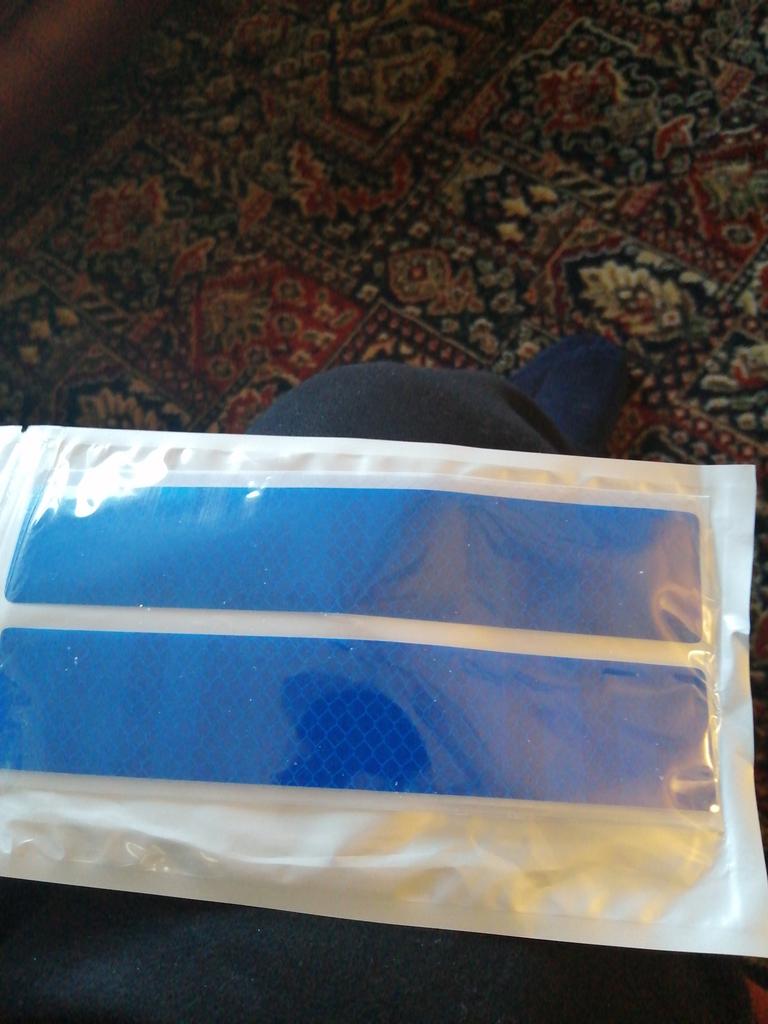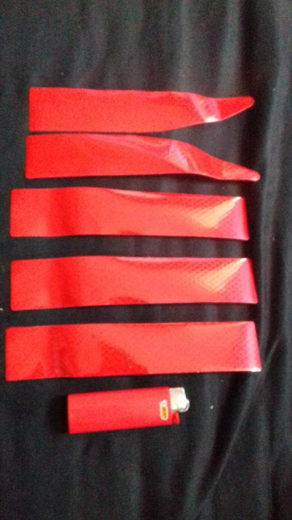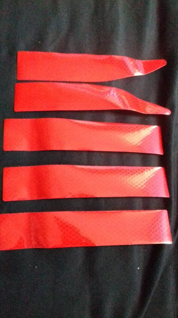 Fica bonito na foto. Em dimensão real, uma fita reflexiva muito estreita. Como vou colar, se fizer porque hesito, dou uma foto.