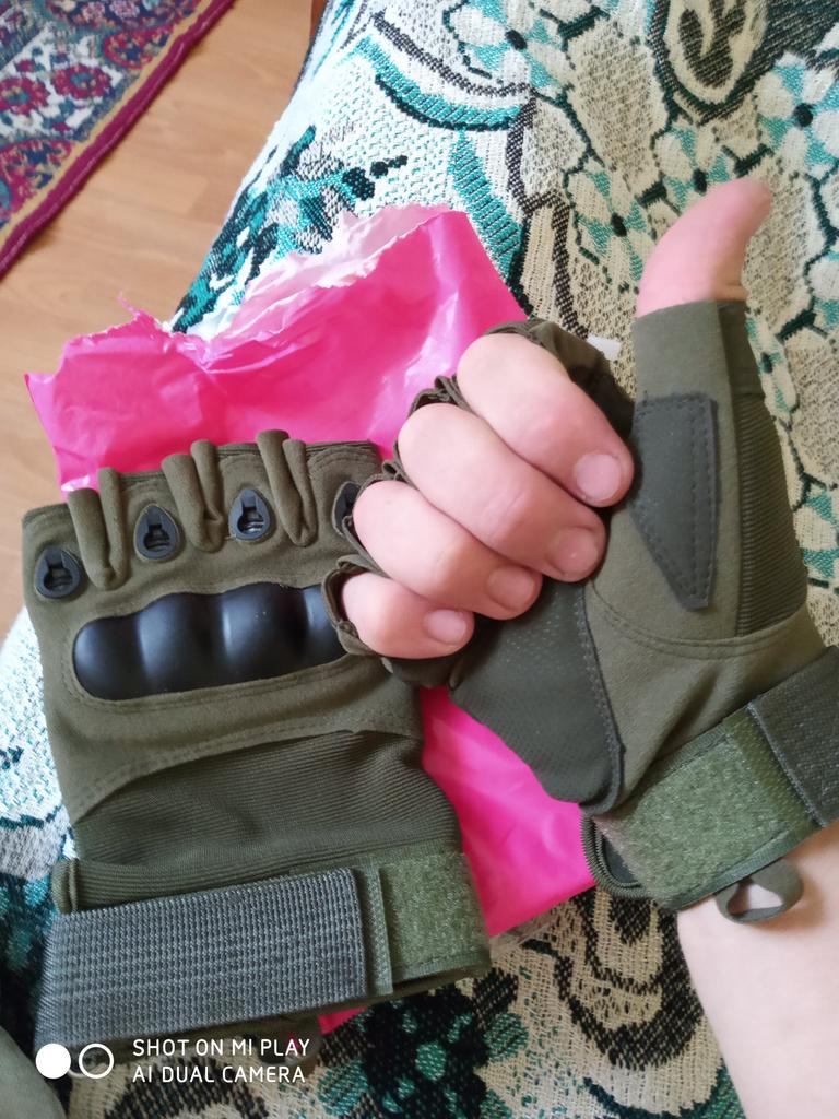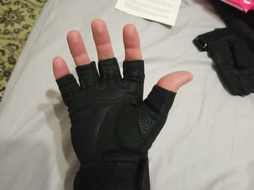 As luvas correspondem às fotos e descrição. Melhor tomar XL. O tamanho L se encaixa bem nas minhas palmas não tão largas.