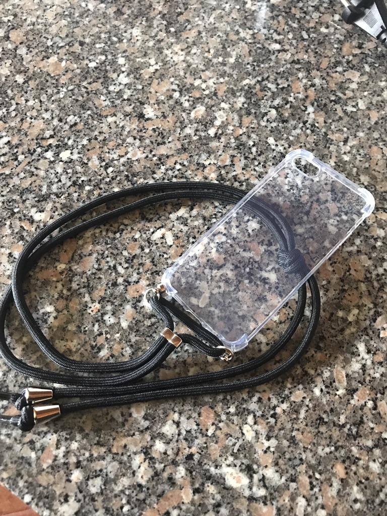 A capa está um pouco deformada (mas pode ser que volte atrás) e infelizmente não segura bem o telefone. Eu estava com medo de cair do estojo enquanto caminhava. O cordão é incrível em termos de qualidade 😅
