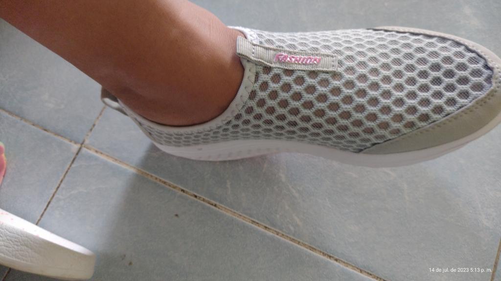 Adoro estas sapatilhas tão confortáveis e muito suaves nos pés ao caminhar. Eu tenho artrite nos meus pés, então estes são perfeitos. Também o material é respirável muito bom para o clima quente. Entregue em um saco cinza selado. Encomendado há 16 dias, garota tão feliz por toda parte. ♥️👍