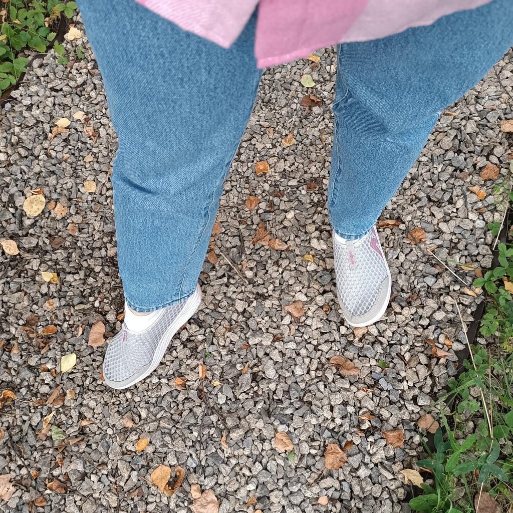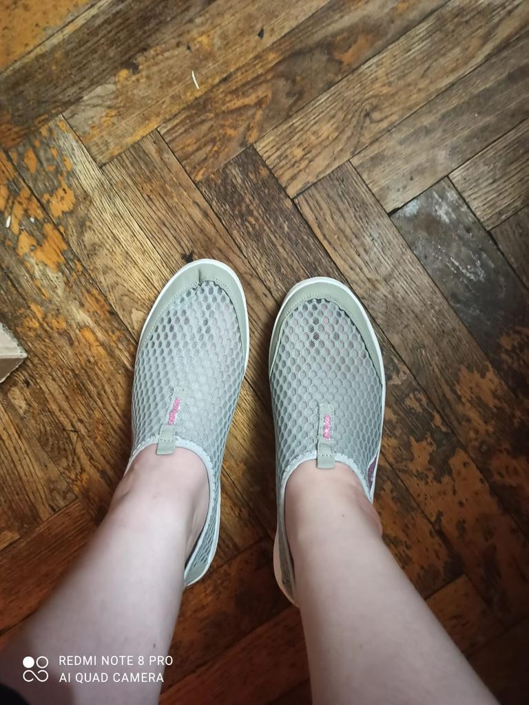 Tênis confortáveis, macios e fresquinhos! 🫶 Corri com eles durante todo o verão. No início acostumei-me com o fato de a sola ter um formato um pouco incomum. Mas aí a perna se acostuma e mesmo com longas caminhadas não cansa nada. Os meus são na cor cinza. Peguei 1 tamanho maior. Tecido de malha, pés não suam. A qualidade é excelente, depois de 3 meses os sapatos estão em bom estado
