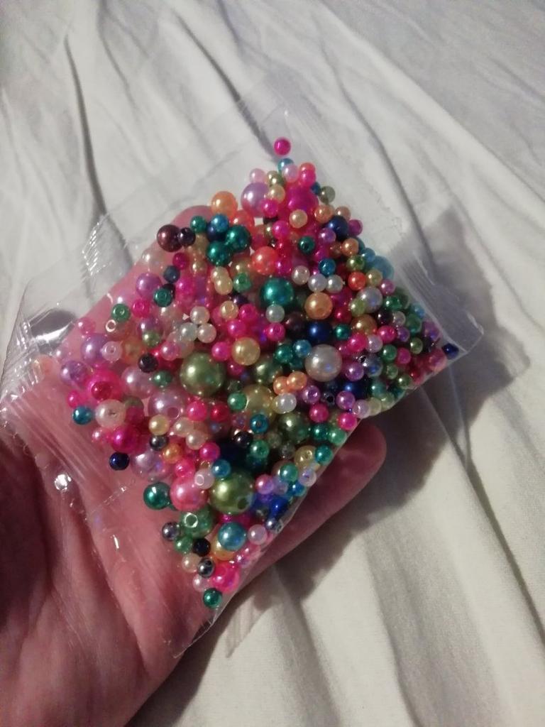 Insatisfeito com minha compra, 350 pérolas de 4 a 10 mm, não contarei as pérolas, muitas pérolas pequenas, poucas pérolas grandes, não corresponde às minhas expectativas, bela apresentação na imagem recebida em uma bolsa. A cor é muito ruim.,
