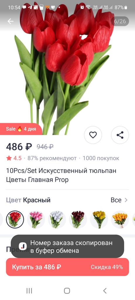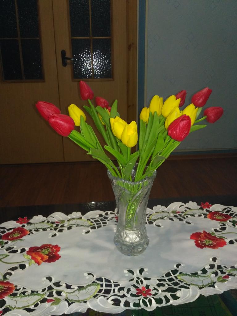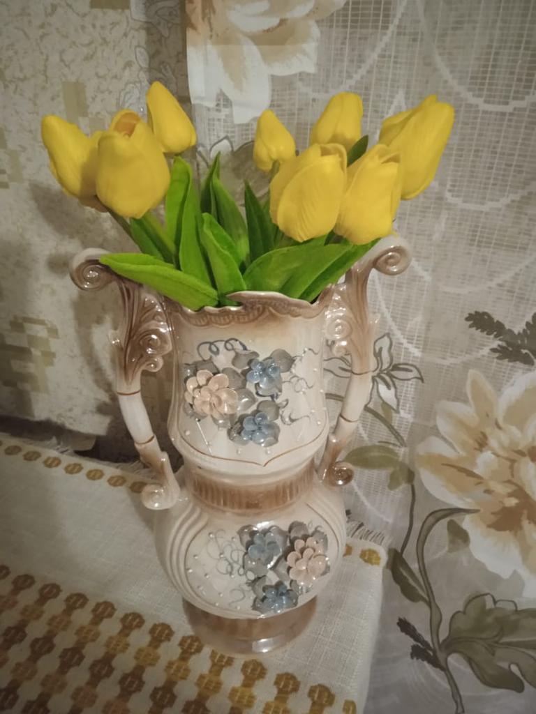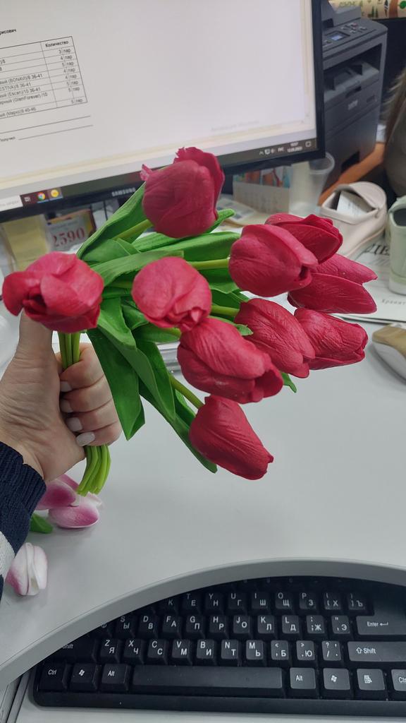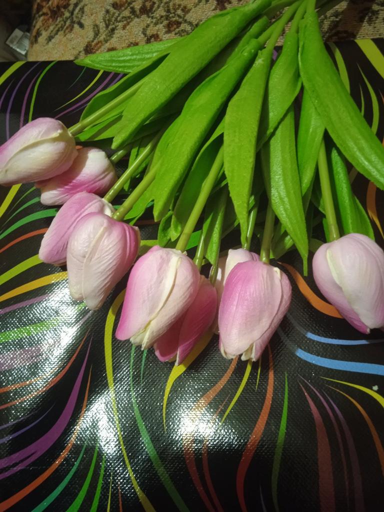 As tulipas encomendadas chegaram à região de Kiev. em 15 dias. (24 de abril a 8 de maio) Demorei para receber Ukrposhta nos fins de semana. As tulipas parecem vivas. Material - espuma macia, dobra bem, endireita facilmente qualquer entrega amassada. Só pelos foto-vídeos apresentados no Jumy eu os imaginei bem maiores. Eu planejei colocá-lo em um vaso maior. Em princípio, satisfeito com a compra. Obrigado pela entrega rápida.