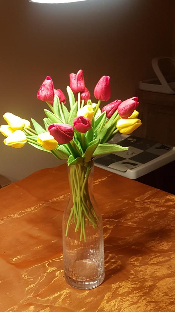 As tulipas parecem tão reais que meus convidados pensaram que eram flores reais, tulipas reais. obrigado novamente