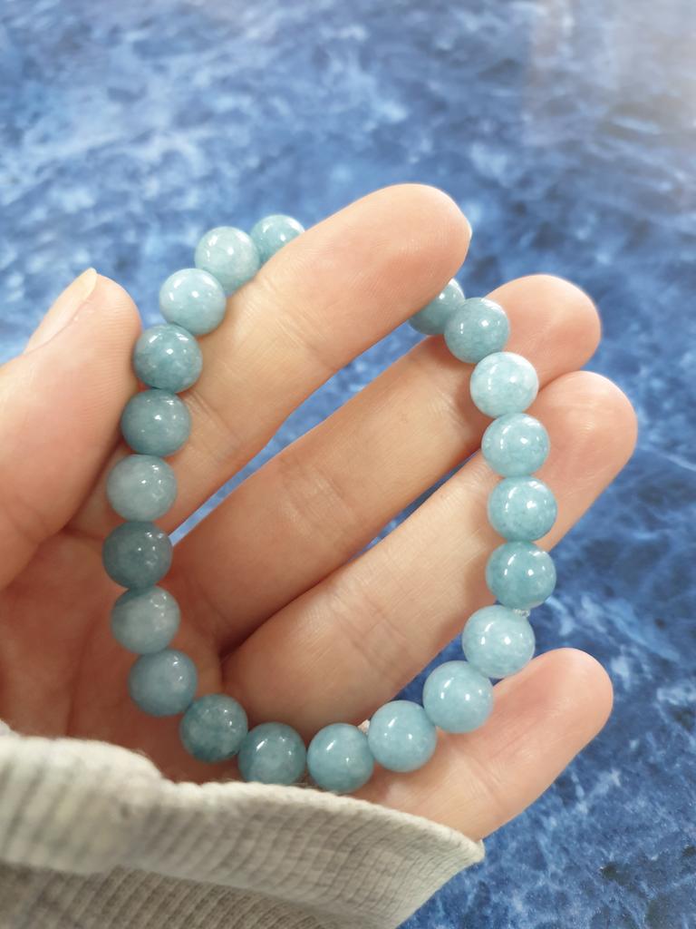 Pulseiras pulseira mar azul contas aquamarin feminino pedra redonda elasticidade natural