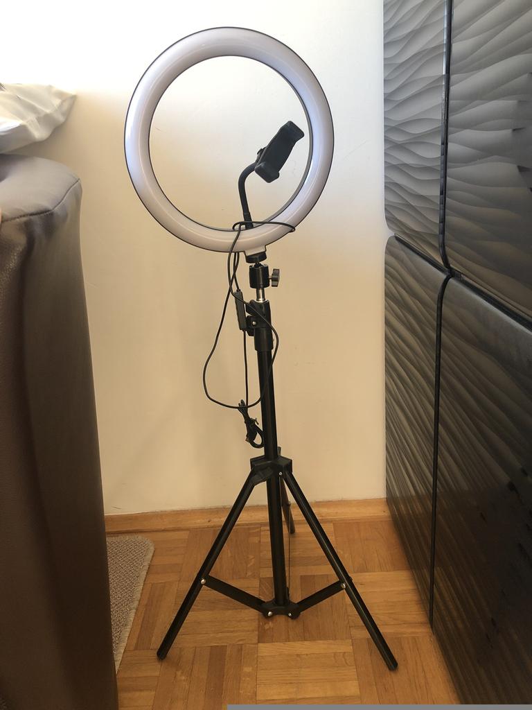 O pacote foi entregue rapidamente, em 15 dias 😍 A lâmpada estava em uma remessa, mas em 2 caixas. Tudo perfeitamente protegido. Apesar da falta de instruções, a montagem é muito fácil. A lâmpada é bem alta, então vai ser fácil fotografar ou gravar styling, maquiagem, unhas, live, etc.. Possui três tipos de luz: quente, fria e neutra. Além disso, cada um deles pode ser ajustado para obter o efeito de iluminação perfeito. O conjunto inclui um anel emissor de luz, um tripé, 2 suportes para telefone (um no anel e outro para um tripé), um cabo com controle remoto para ajuste da luz. Na minha opinião, um total deve ter para cada blogueiro. ❤❤❤
