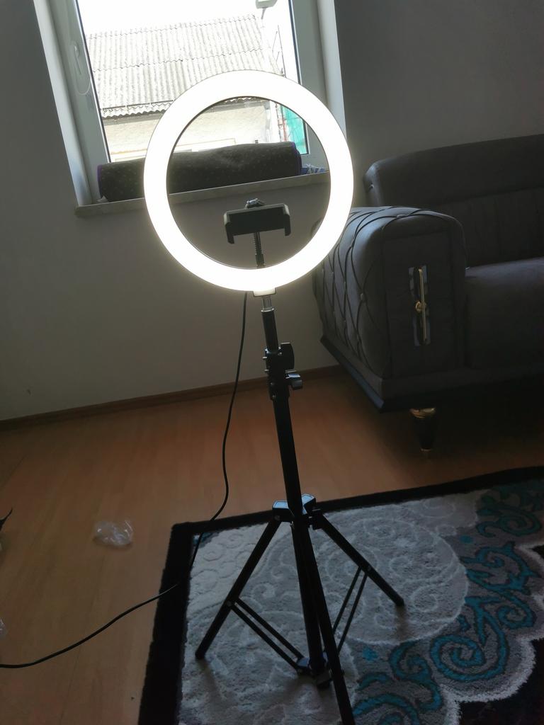 Super 👍 é muito bom. Handy segura firmemente e é bem ajustável. A luz é continuamente ajustável em branco ou branco quente. É ajustável em altura até 160 cm. Estou super satisfeito ⭐⭐⭐⭐⭐