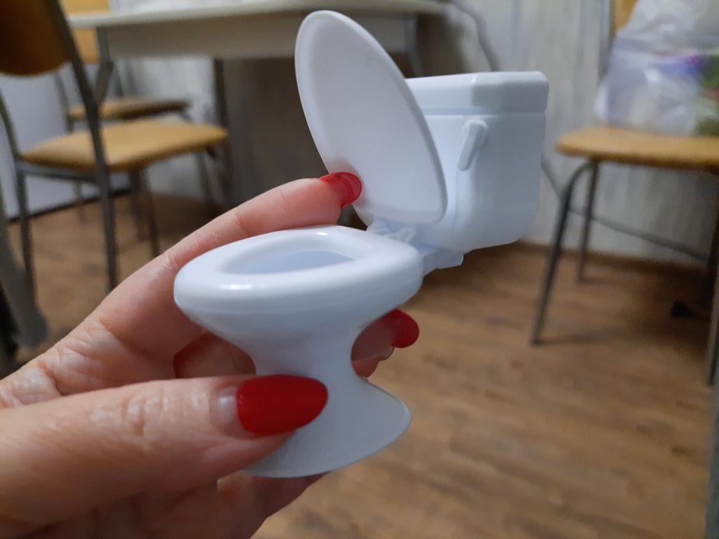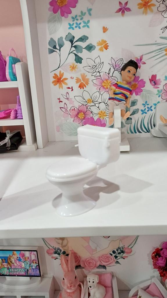 O vaso sanitário é pequeno, a tampa não abre totalmente, mas a filha gostou)