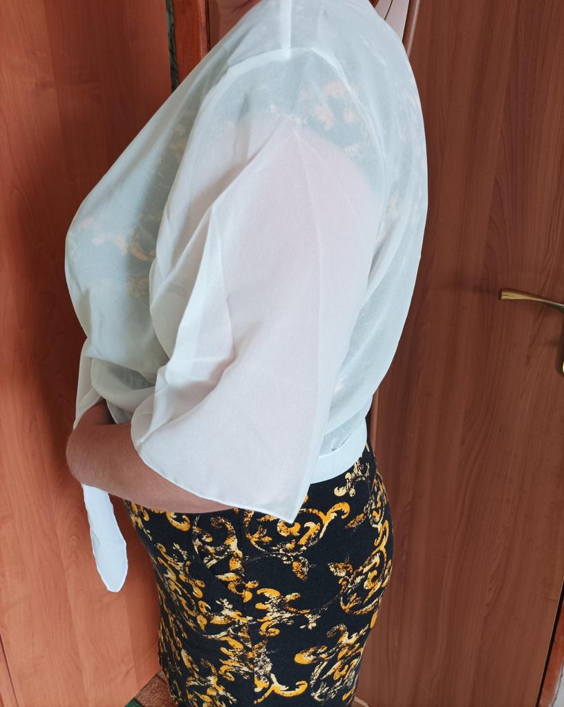 É muito bonito, só acho que as mangas são um pouco mais longas