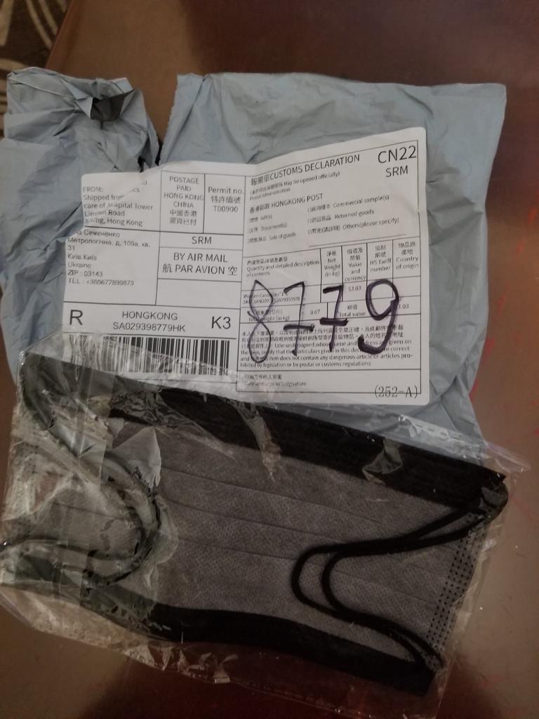 Uma máscara chegou em vez de um xale de chiffon.
