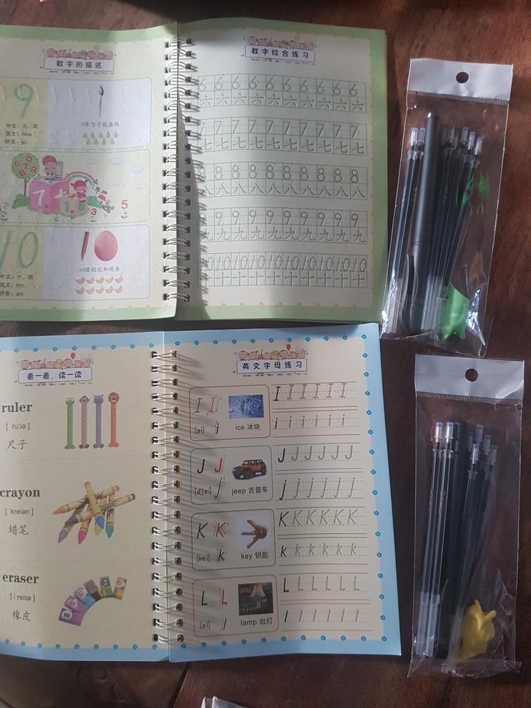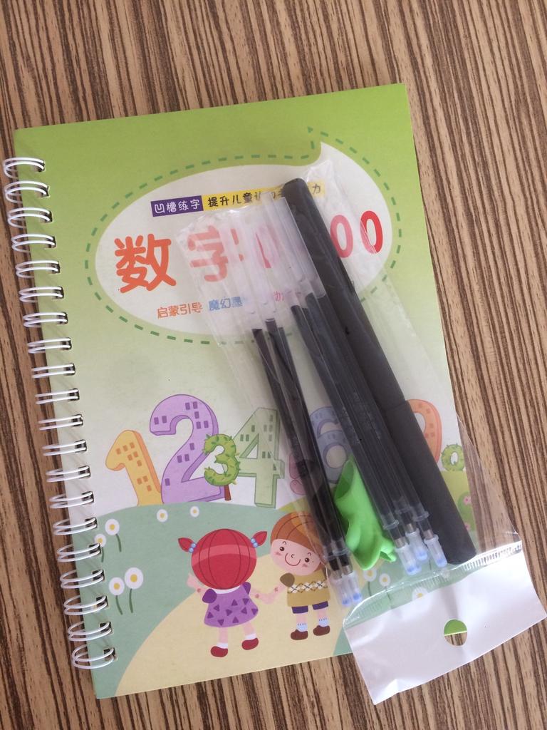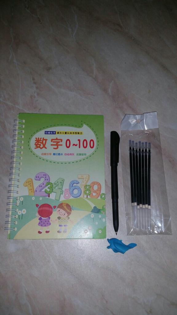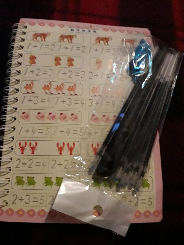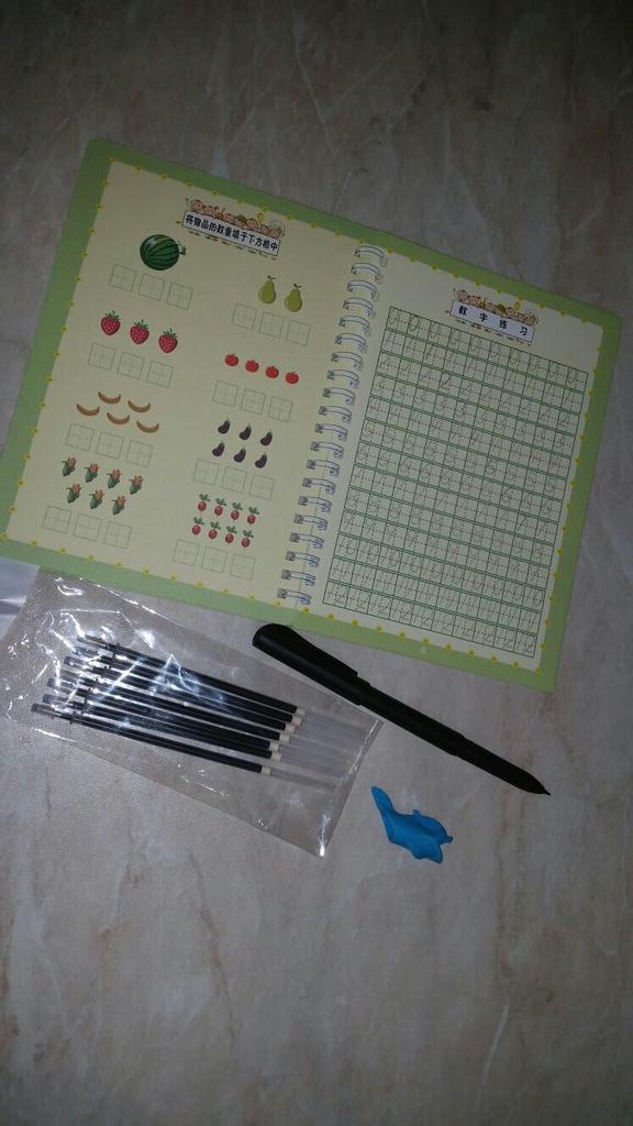 É muito bom para crianças que estão começando a escrever. No conjunto vem com uma caneta e algumas sobre as quais os dois que você escreve são apagados. Ideal