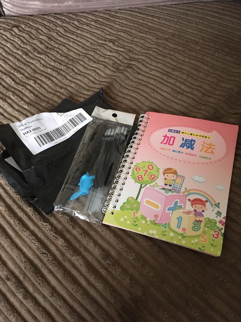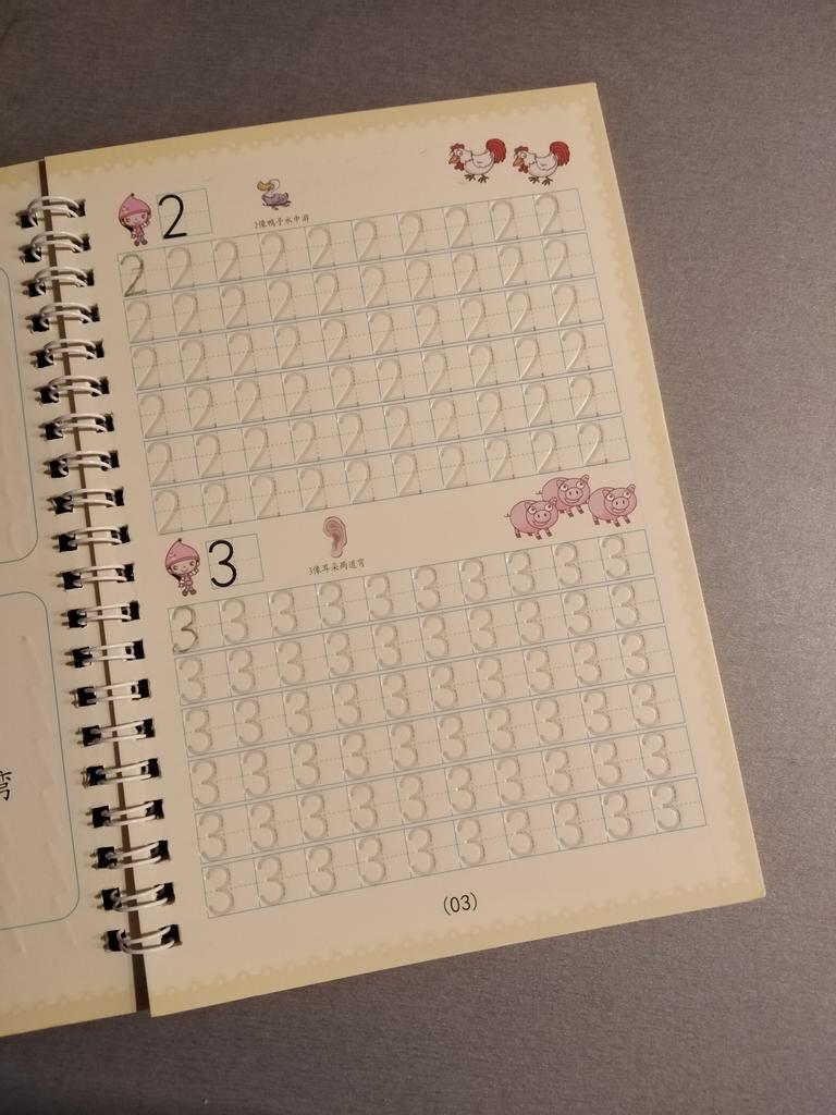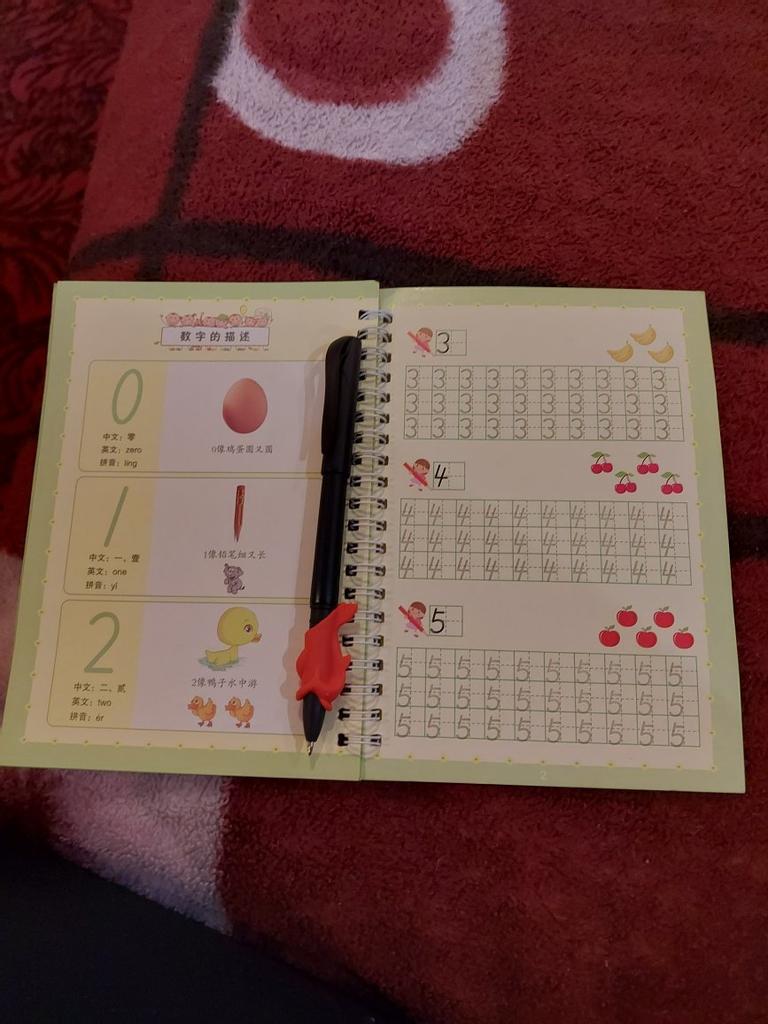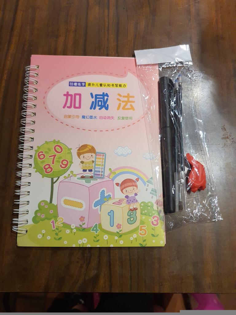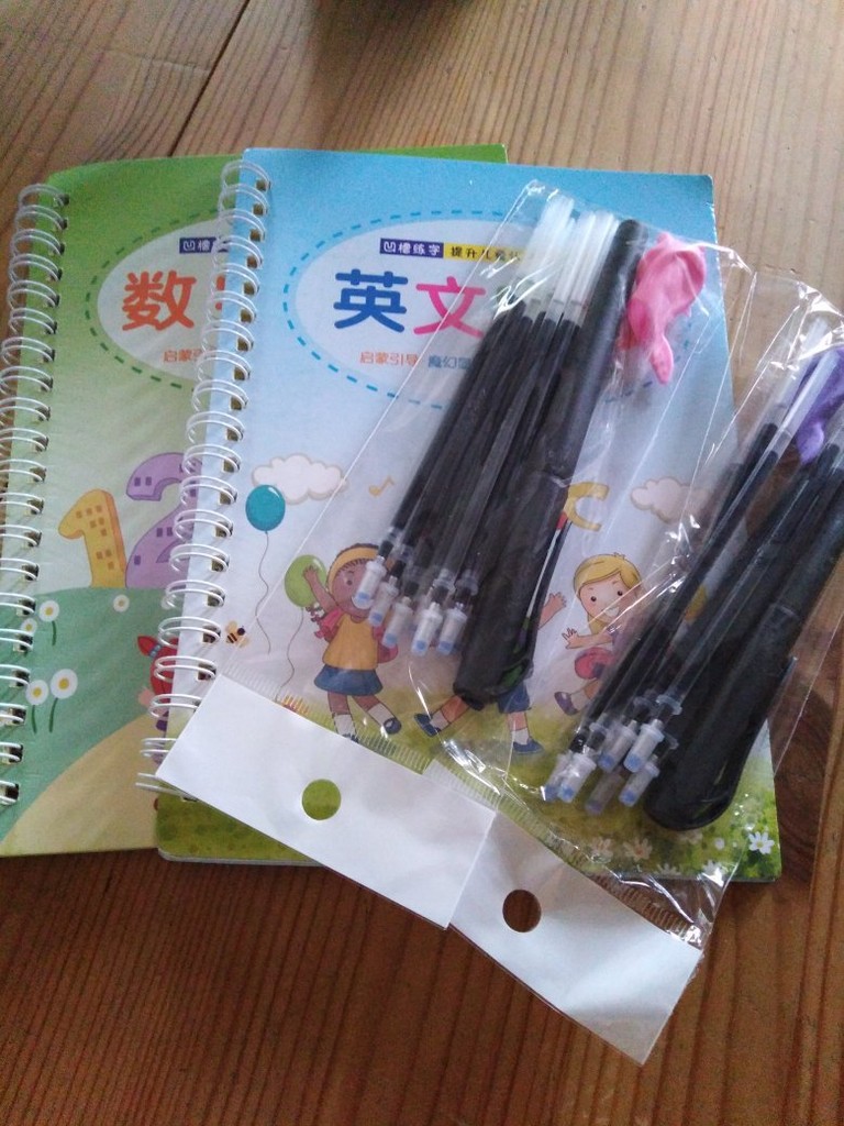 É muito bom para crianças que estão começando a escrever. No conjunto vem com uma caneta e algumas sobre as quais os dois que você escreve são apagados. Ideal