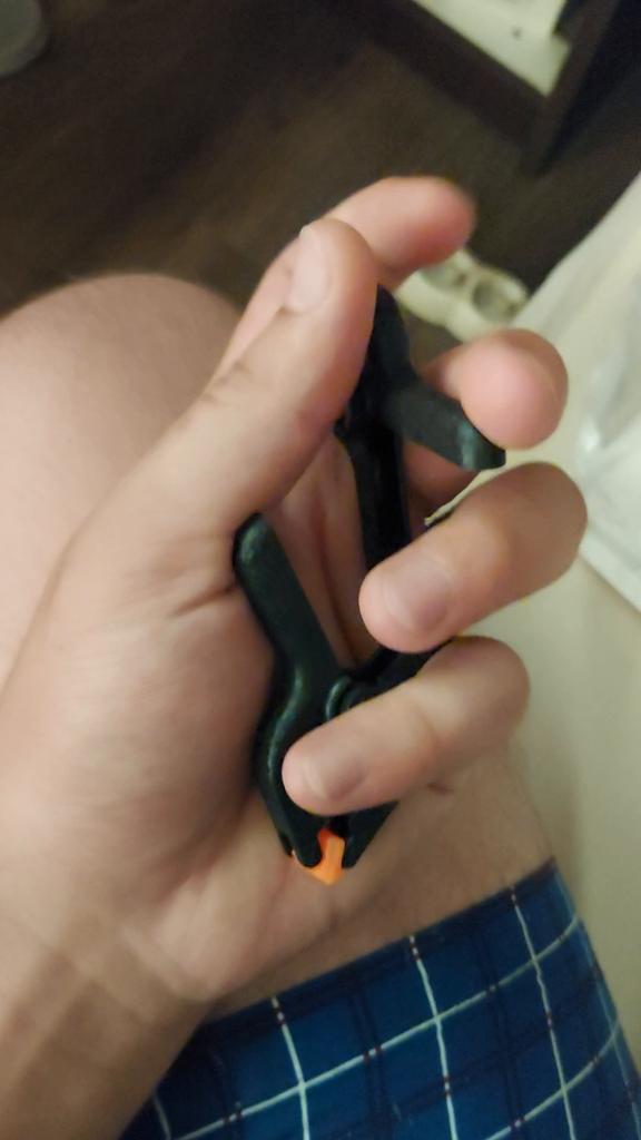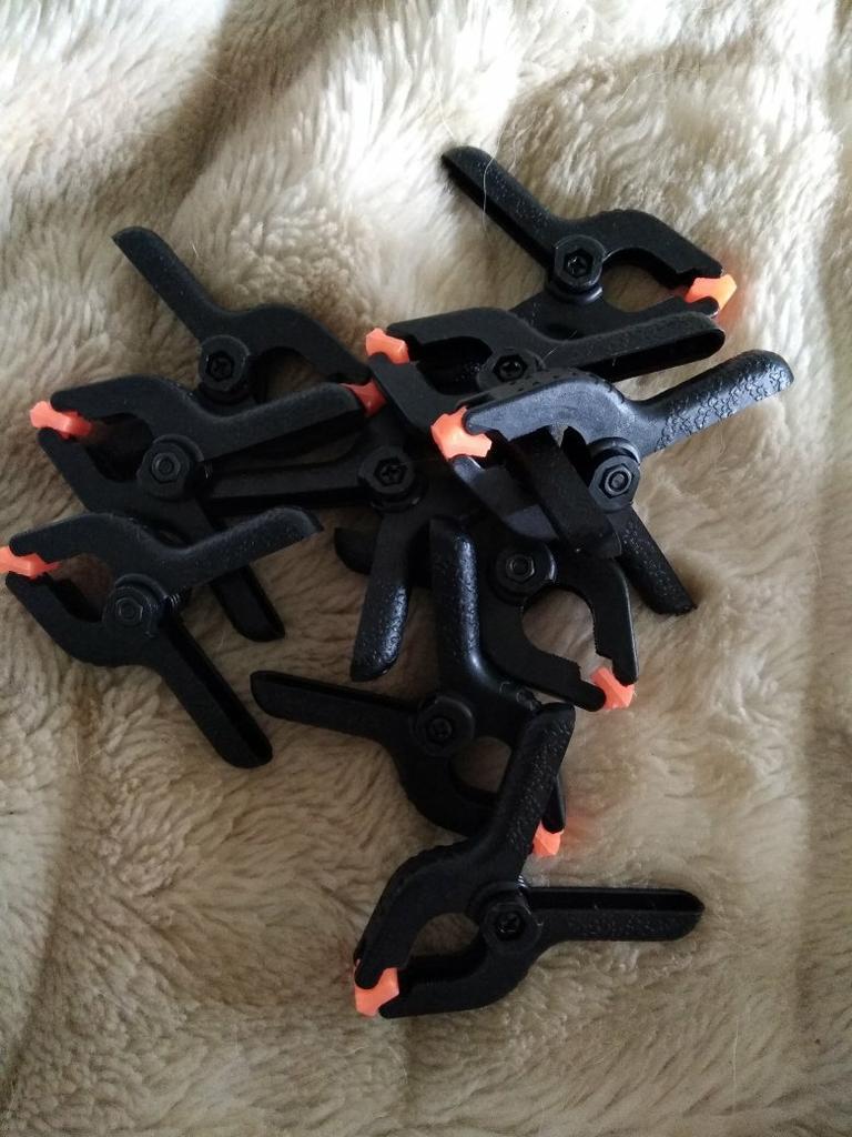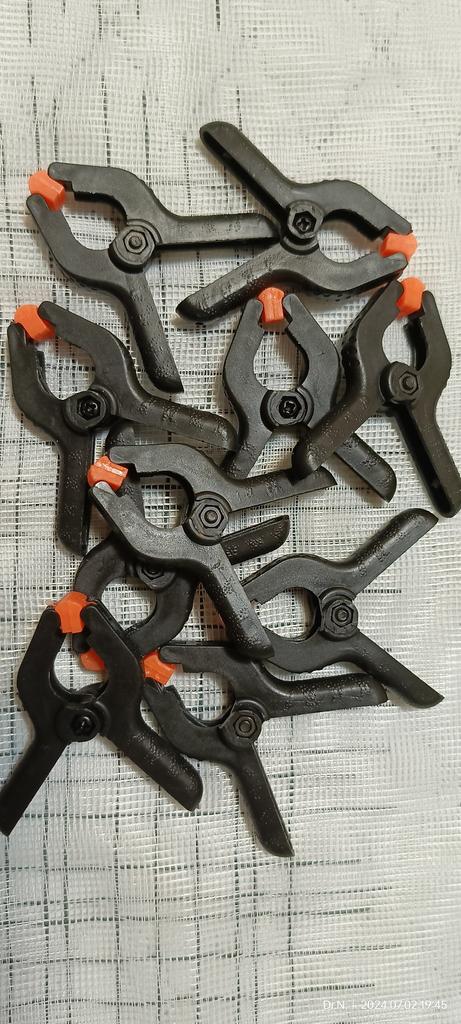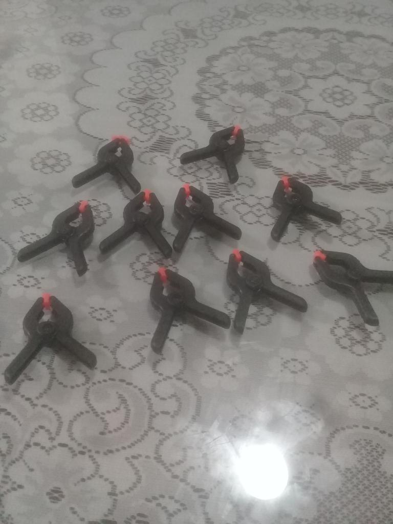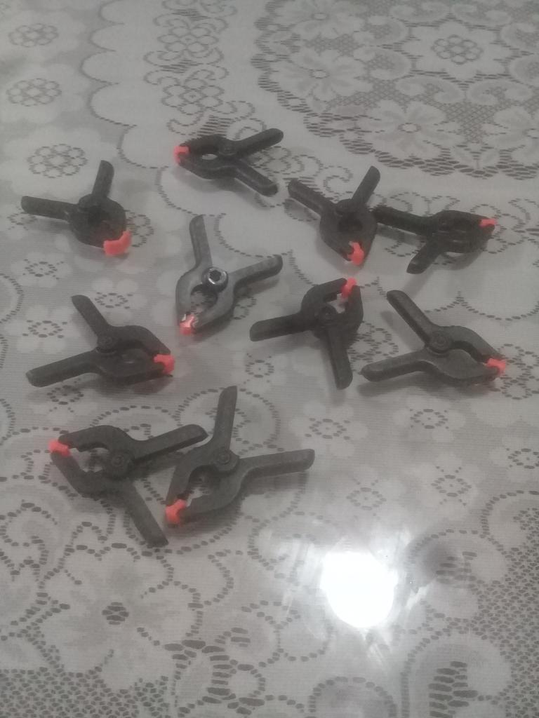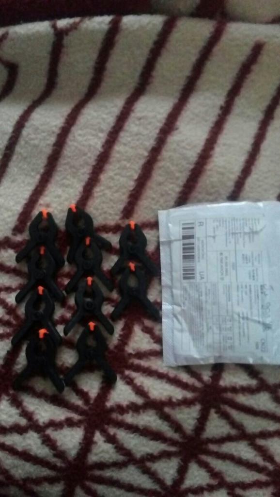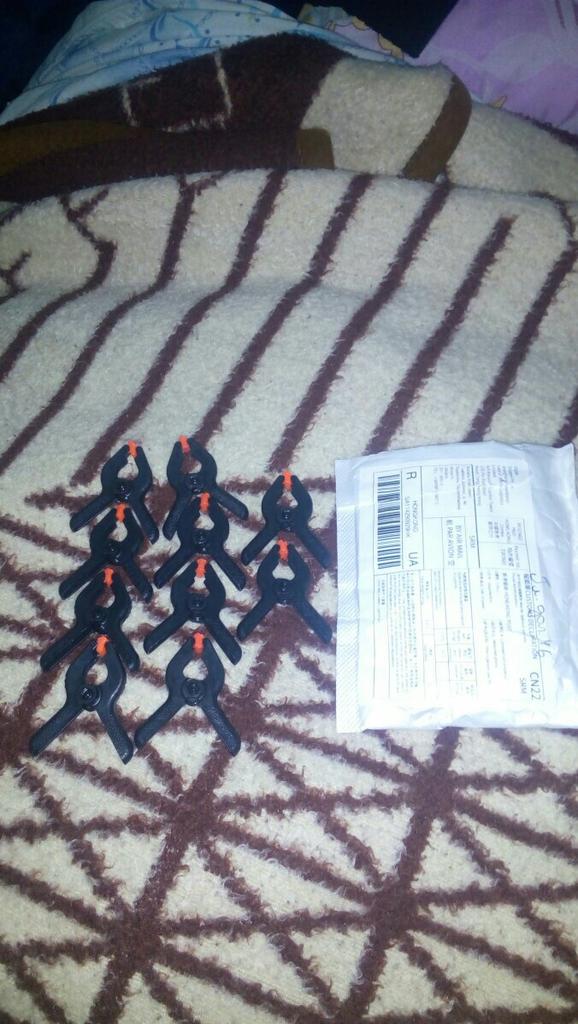 Grampos-grampos funcionais. O tamanho é exatamente como solicitado - 6,5 centímetros com "esponjas" rotativas. Para trabalhos em couro ou modelagem - é isso. Embora feito de plástico, mas bastante forte e boa resistência à compressão. Satisfeito com o pedido, recomendo o vendedor e o produto.