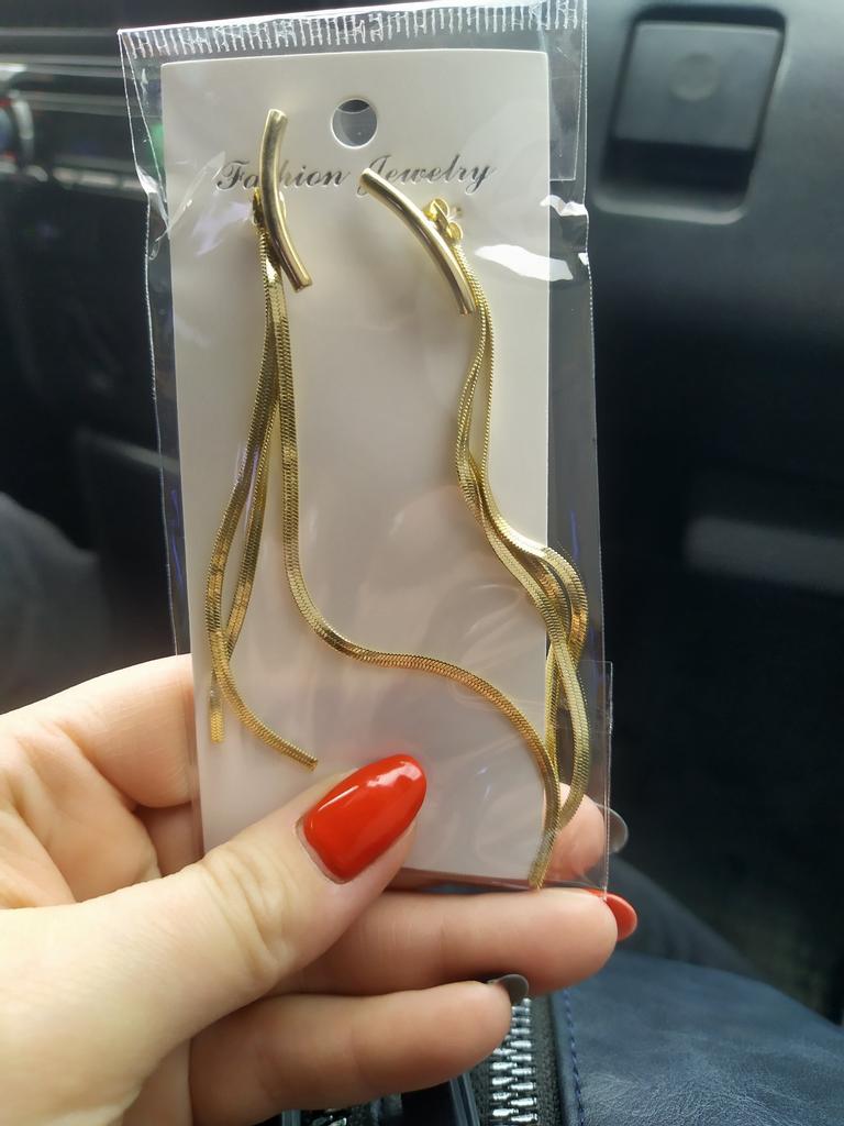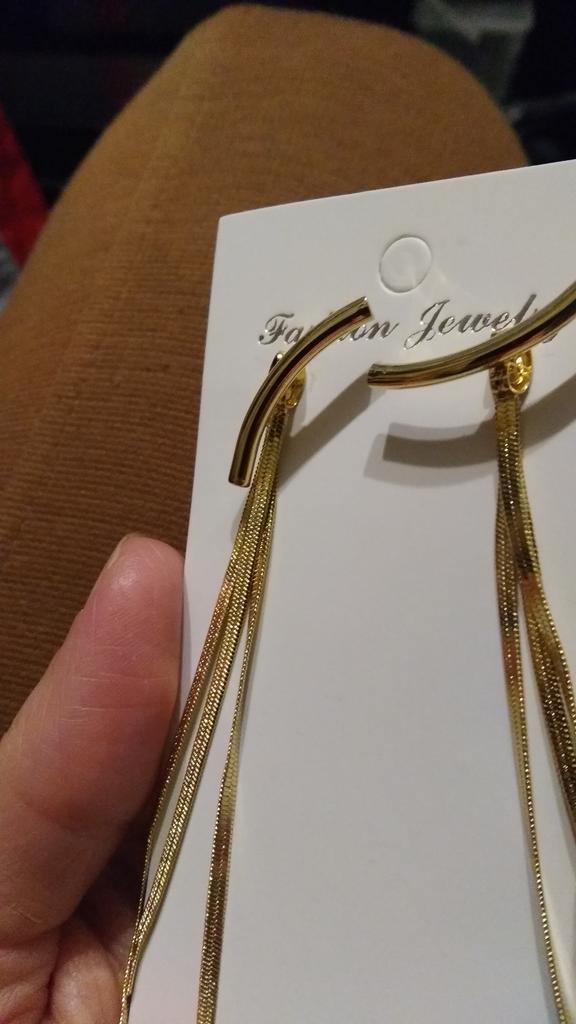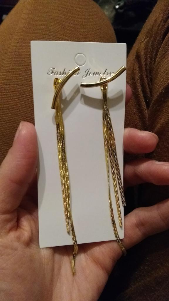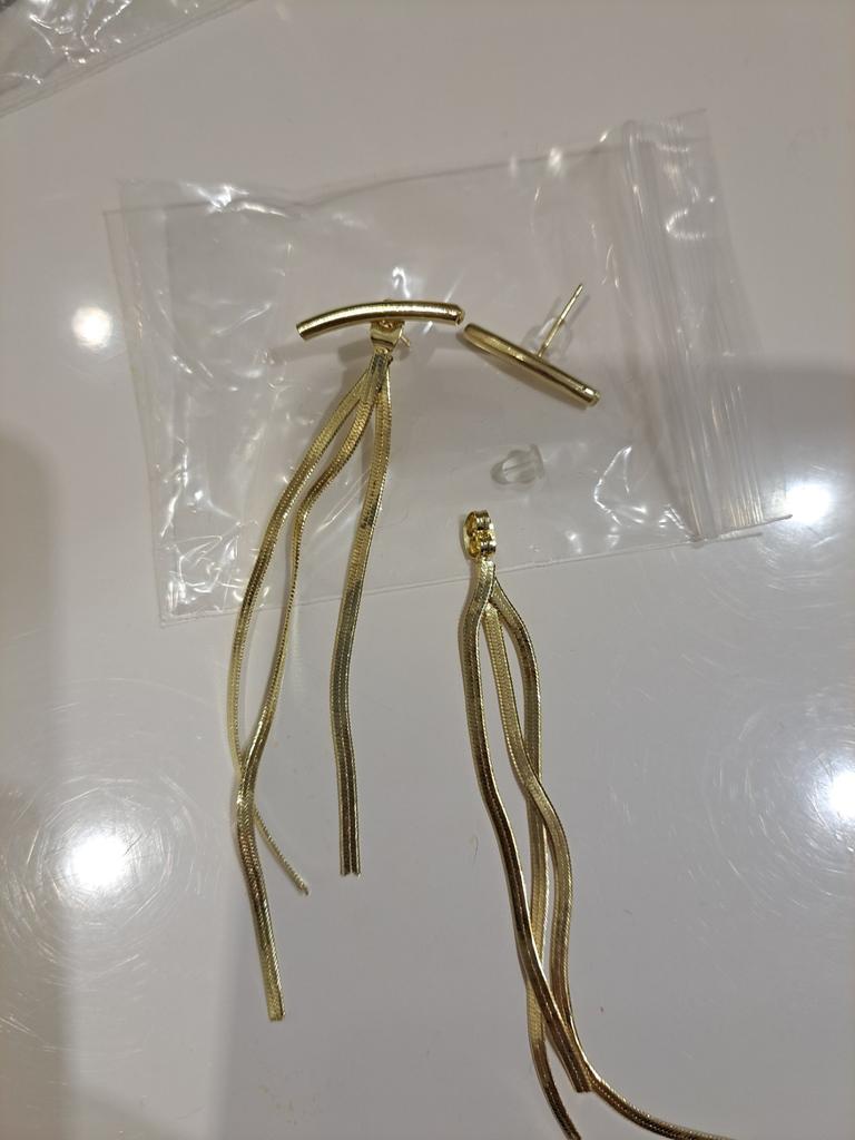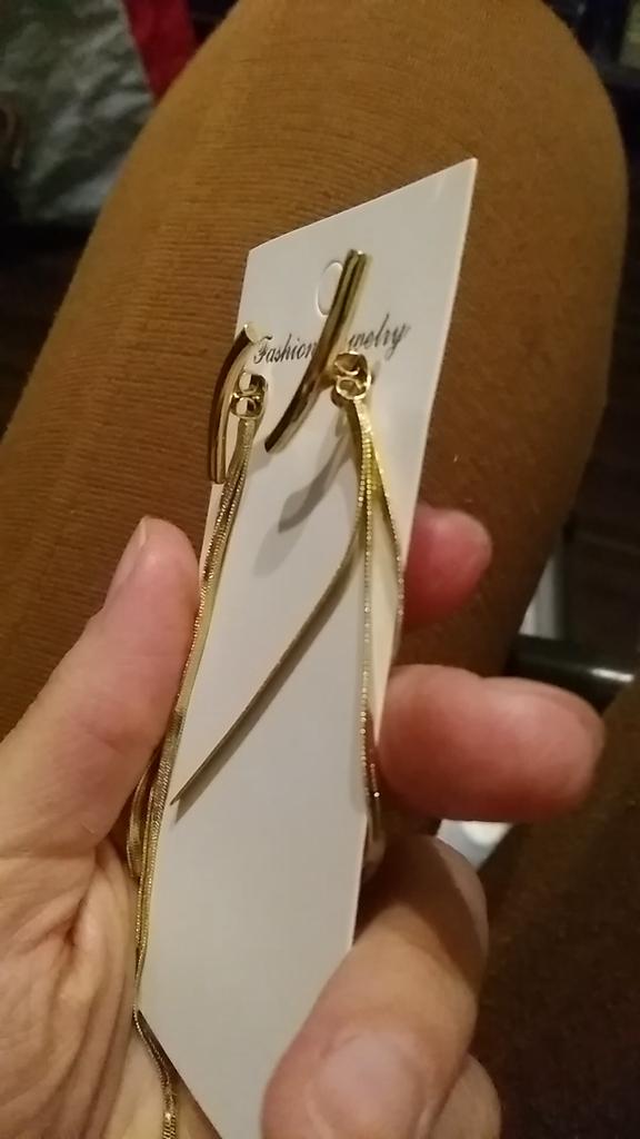 Brincos lindos, mas... A cor é muito amarelada, e a cor das correntes e da base são diferentes, o que os torna baratos. Além disso, a base da orelha torce e fica vertical. Eu o uso sob a cobertura do cabelo, quando apenas a parte inferior das correntes fica visível.