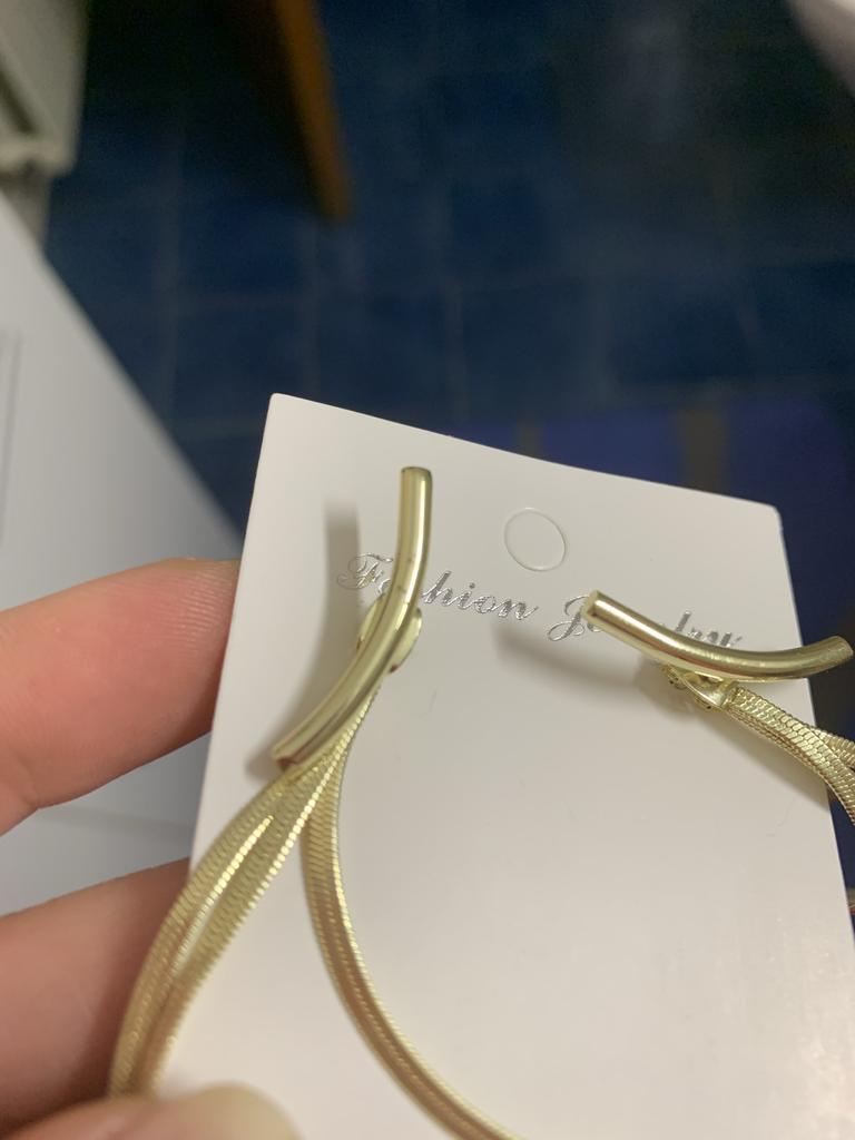 A ideia é boa, mas a ponte em forma de meia-lua é muito longa. Não embeleza o lóbulo da orelha, mas se estende até a bochecha e, portanto, parece completamente deslocado. 🙈 Os próprios 3 fios de ouro são lindamente trabalhados. Infelizmente não parece real. Infelizmente não vou usar ou só com cabelo comprido solto onde não dá para ver a banana que é muito comprida. Parece Engraçado. Não é elegante ou elegante como nas fotos do produto. Sempre o mesmo. Não compre mais nada do joom.
