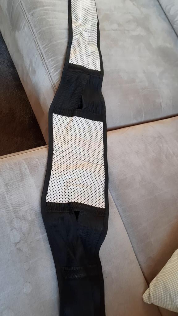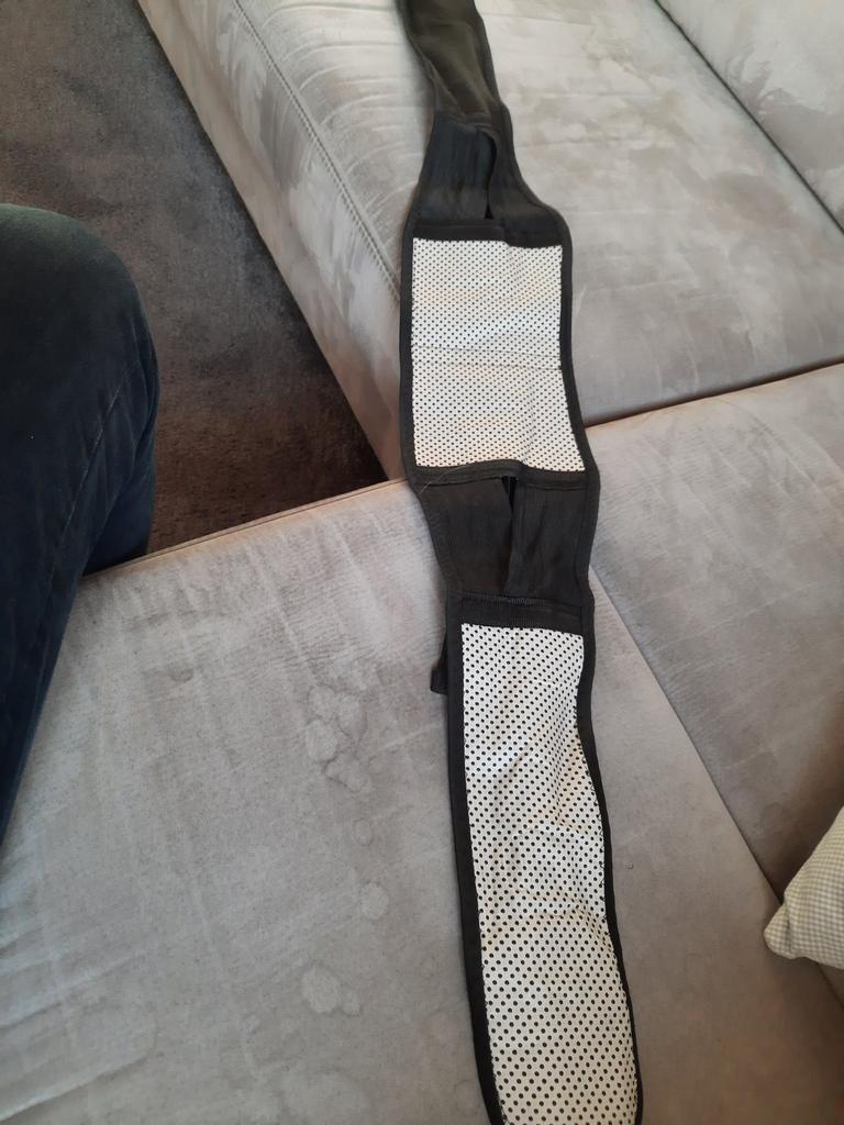 Já encomendei este cinto pela segunda vez. Antes de usar, ele precisa ser umedecido com água. Há ímãs costurados nele.
