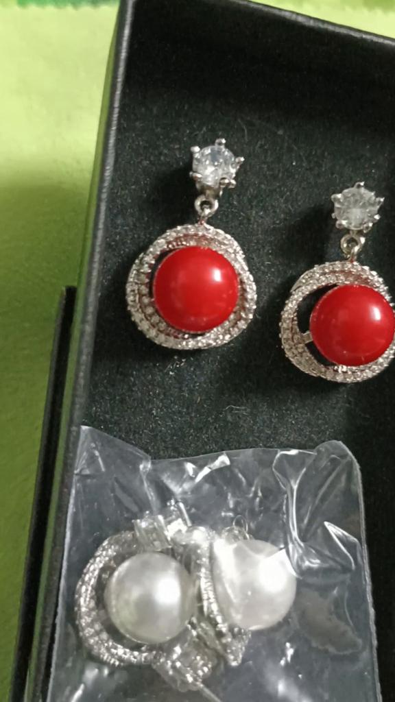 Lindon Fashion Earrings Jewelry with Red Pearl Zircon Gemstone Drop Earring for Women Wedding Party Gift