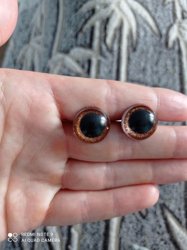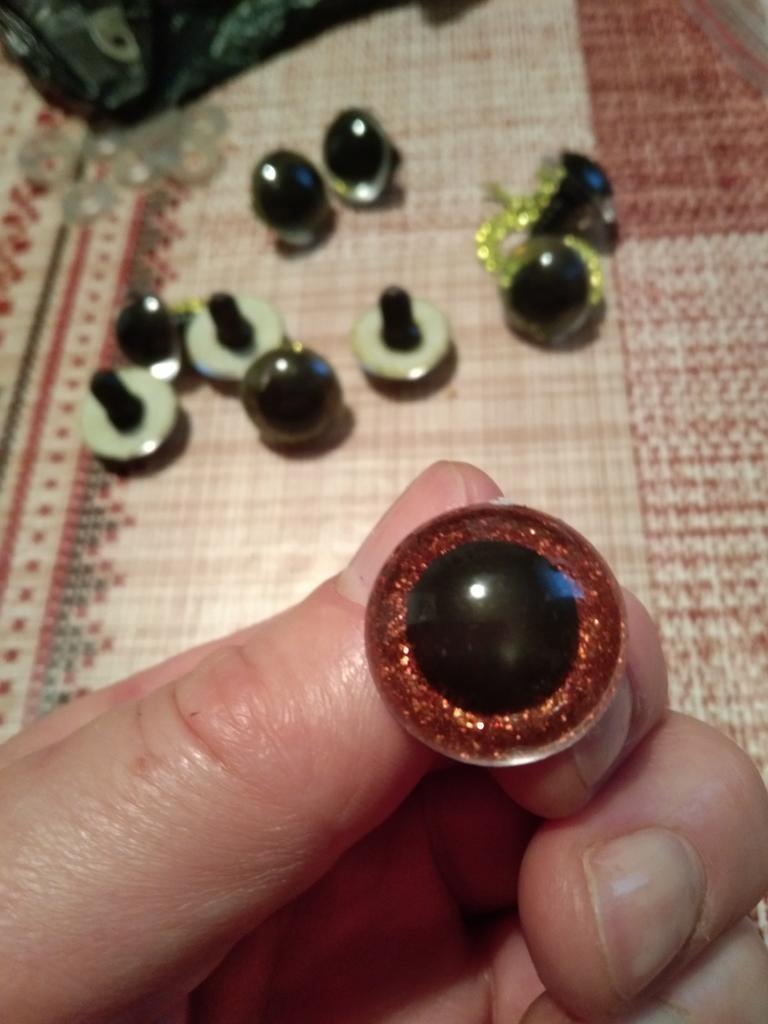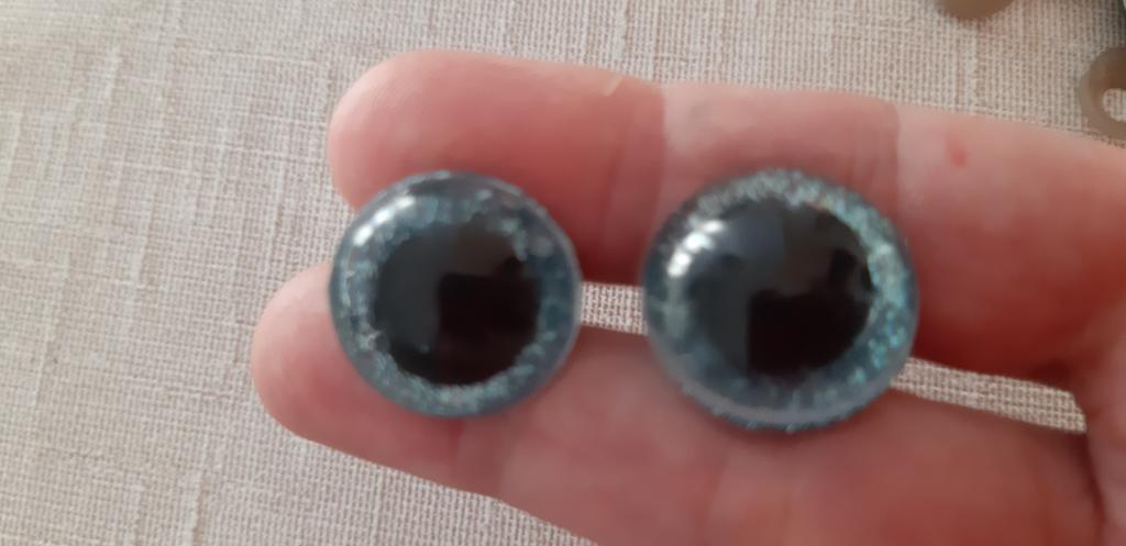 Os olhos são bem feitos, com o anel de glitter eles brilham muito na luz