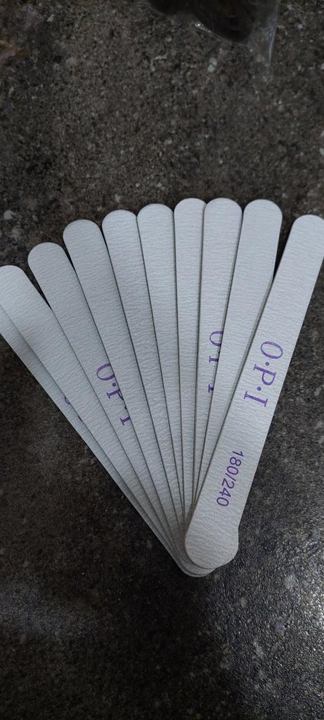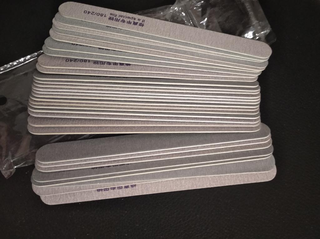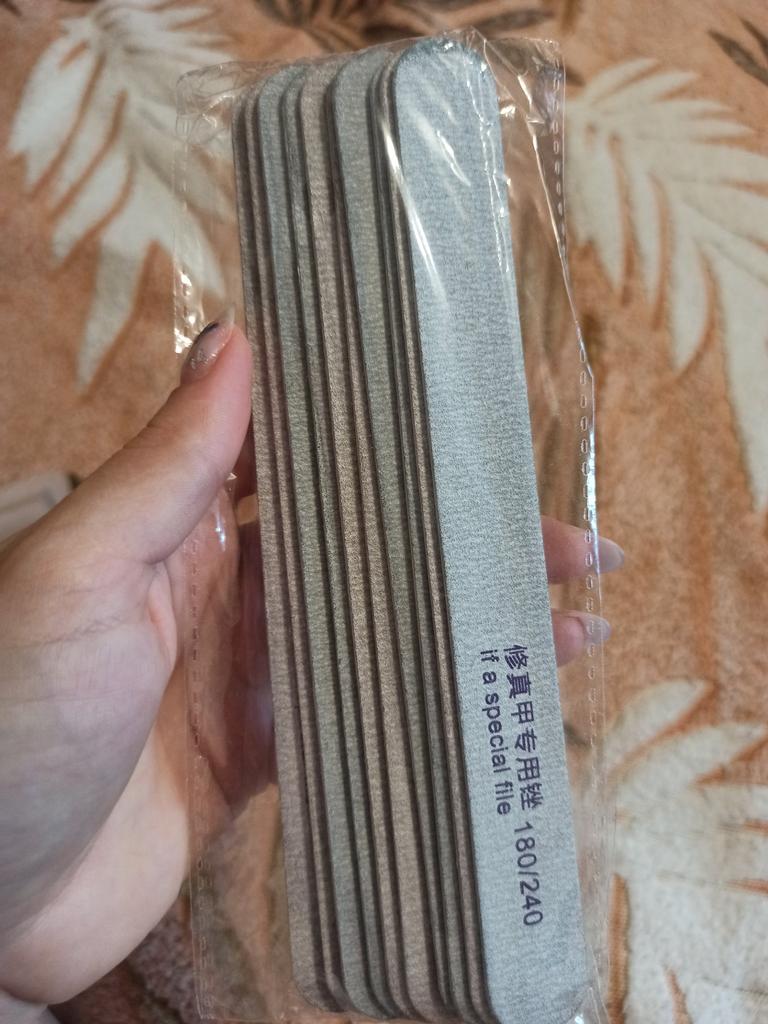 Boas limas de unhas, 180/240. Em um conjunto de 5 arquivos, você pode compartilhar com alguém, dar. As limas são finas, às vezes mais grossas, mas são convenientes de usar, fazem bem o seu trabalho.