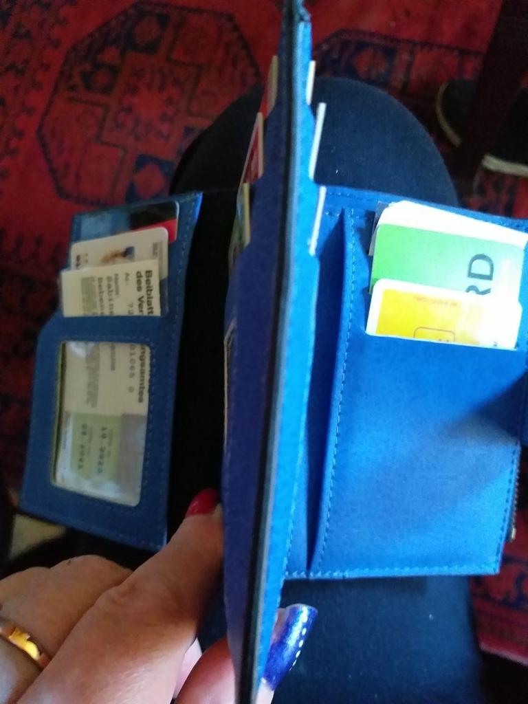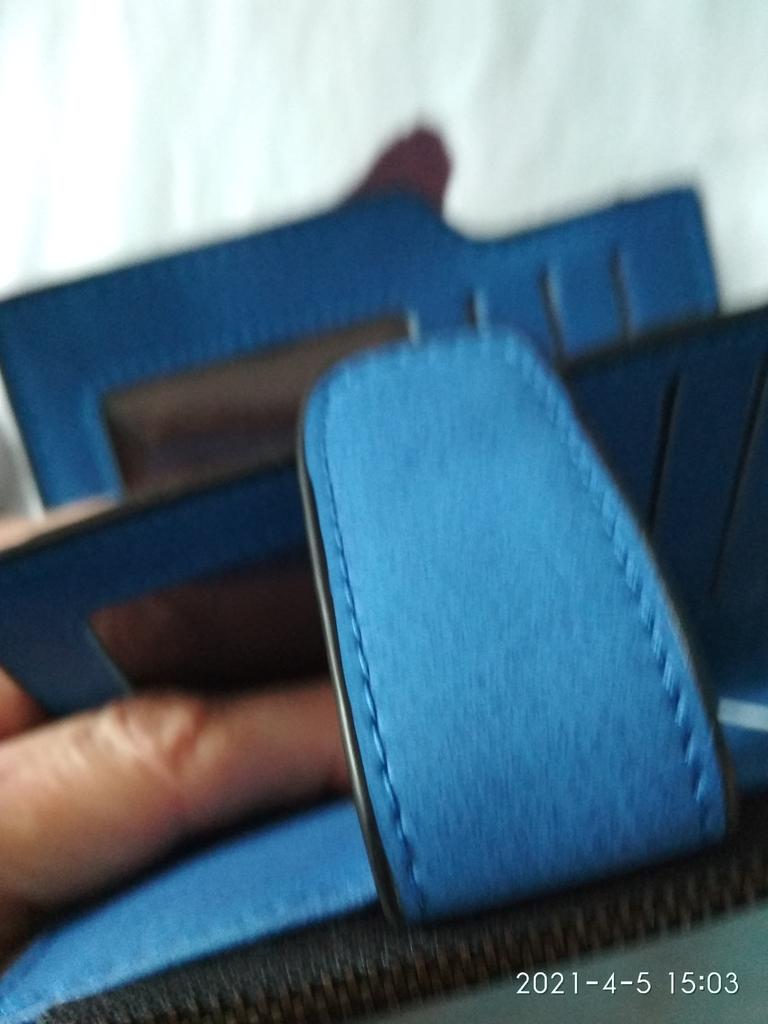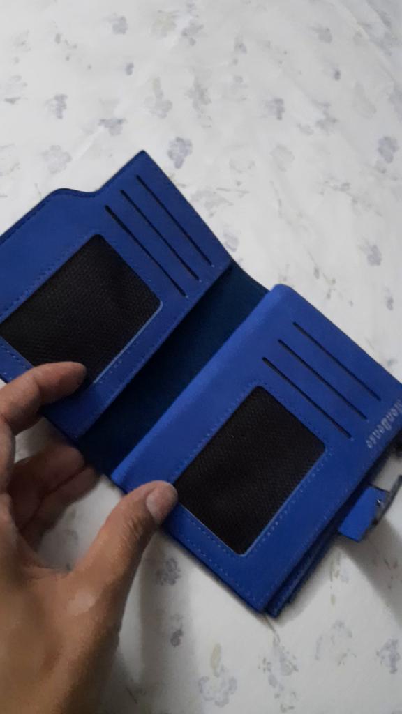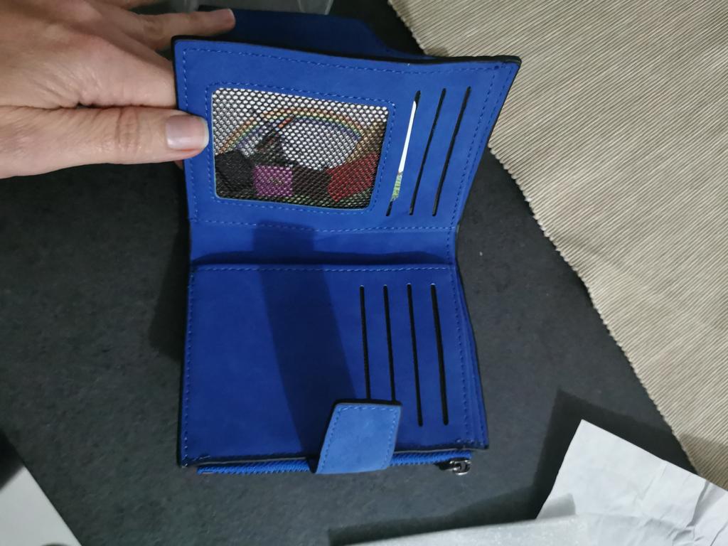 Lindo, ótimo toque, muito macio, um azul lindo, igual ao da foto, bem espaçoso, com muitos compartimentos, boa medida, muitos compartimentos para cartões e identidades. Muito completo, muito bem costurado. Adorei! !!