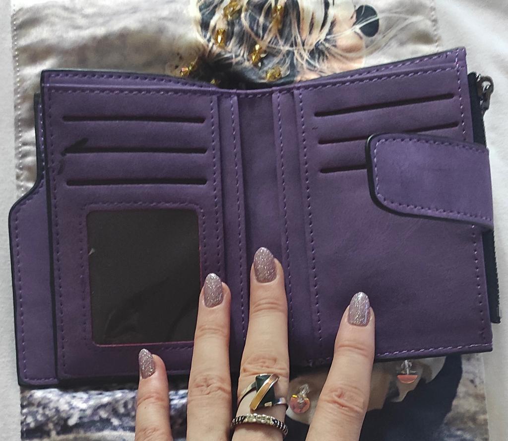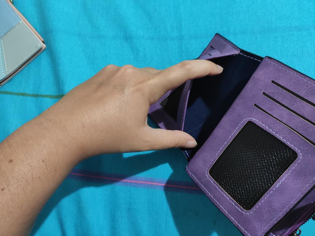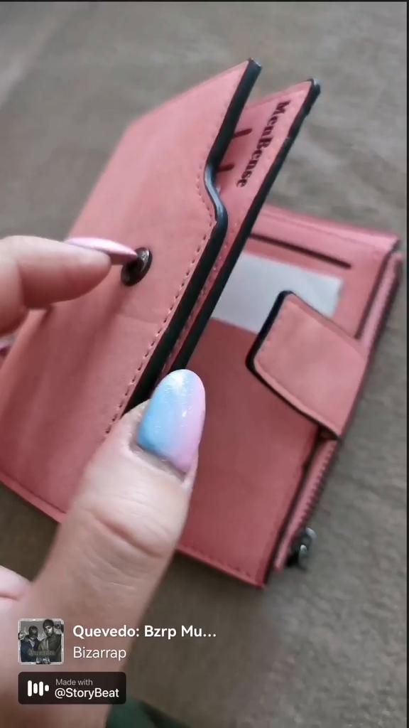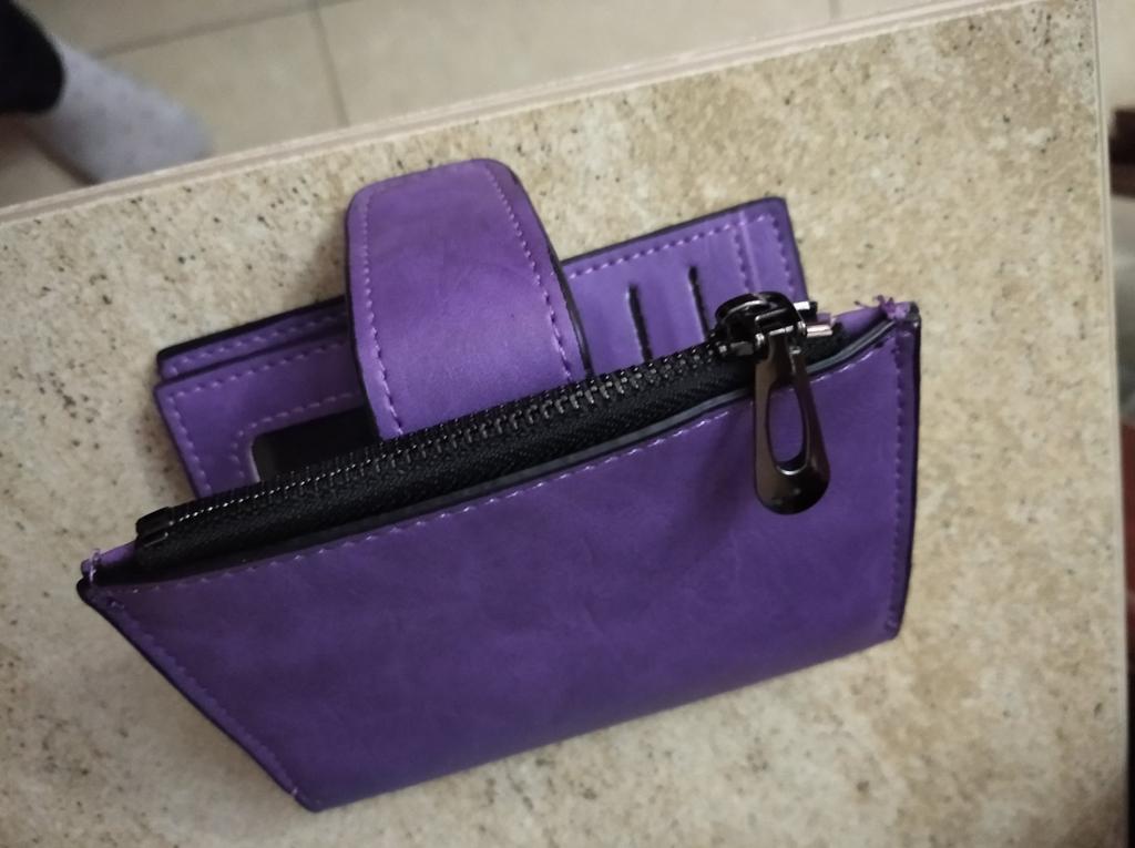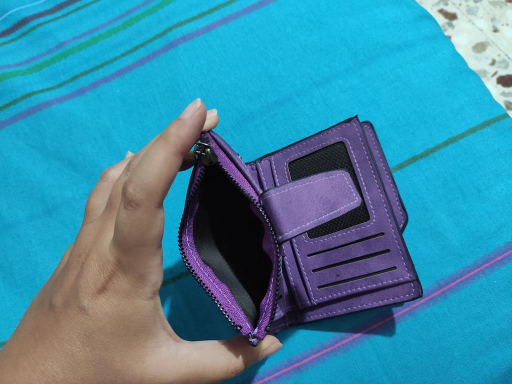 Uma carteira pequena e bonita, macia ao toque, mas o zíper não parece abrir com muita facilidade.