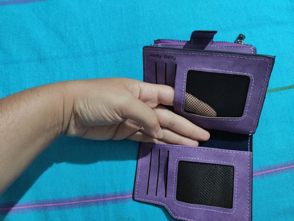 É uma carteira linda e o vendedor também me deu um lenço de cabeça como uma linda tiara muito gentil e o material é bom eu amo essa carteira👍😍